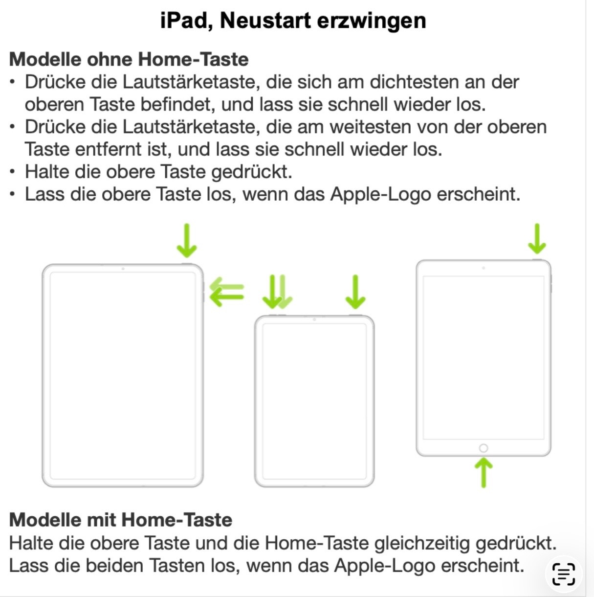 Ein erzwungener Neustart unterscheidet sich dadurch von einem einfachen Neustart, da hier nicht nur iOS und Prozesse beendet werden, die von einem gewöhnlichen Neustart unberührt bleiben. Ein erzwungener Neustart entleert auch den Arbeitsspeicher deines iPads.