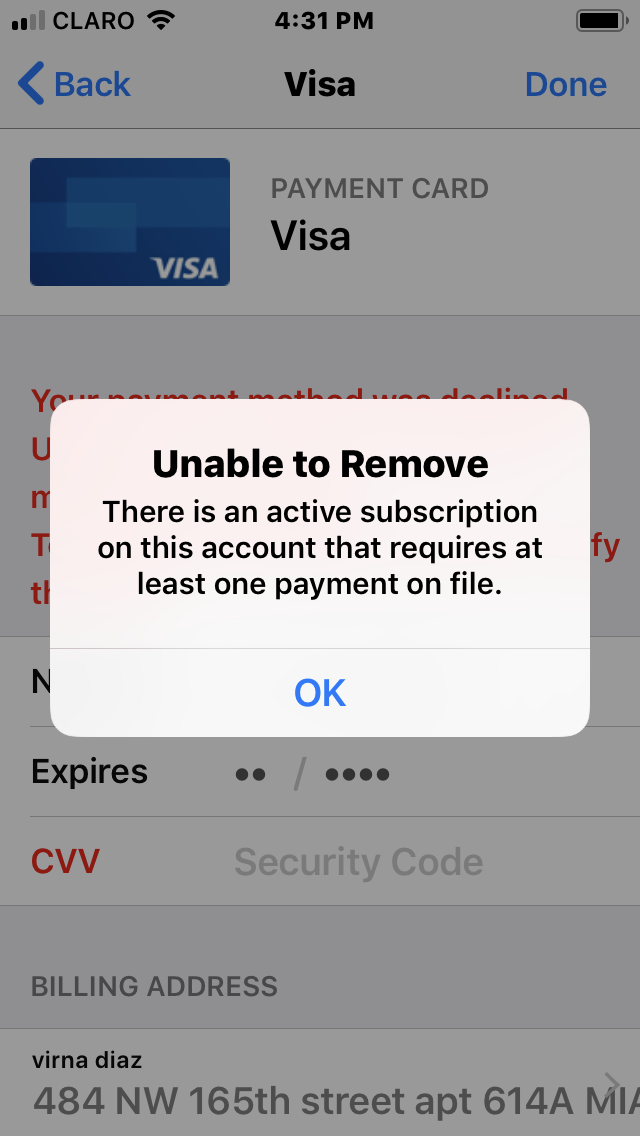 Help me remove my old card since I cannot remember the subscription it’s attached to...