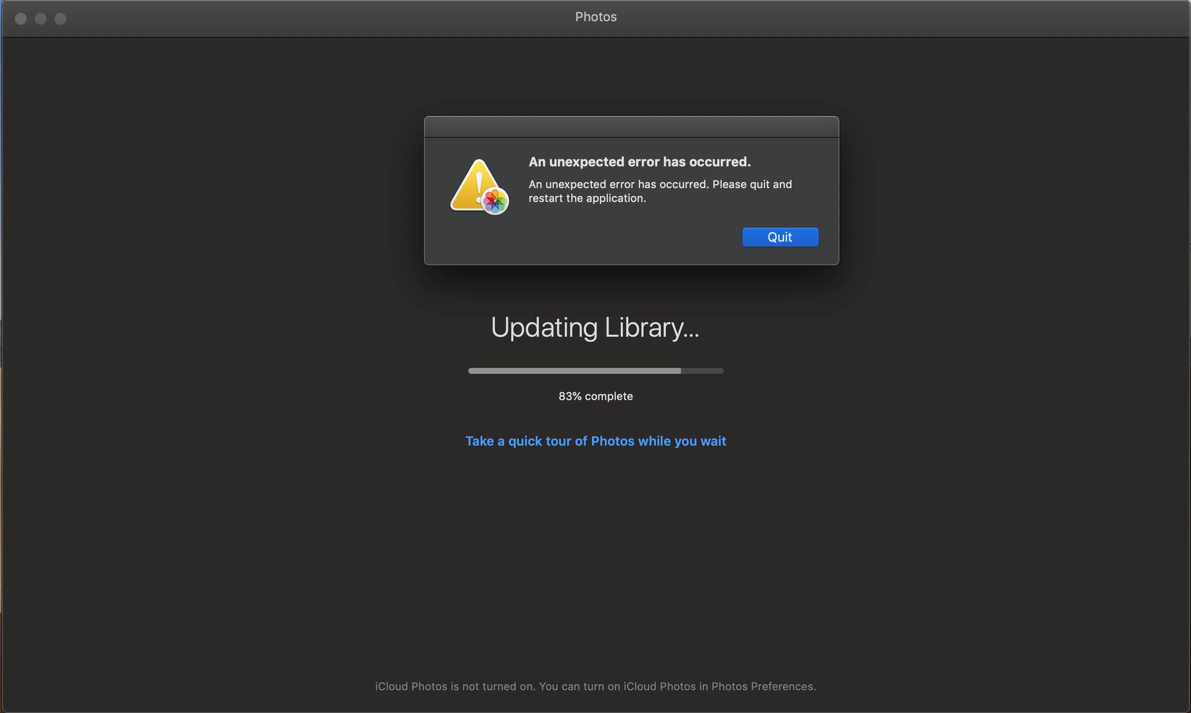 'Unexpected error has occured' when opening Photos app after the latest OSX update