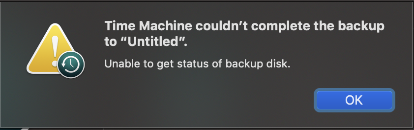 After running just fine, my Time Machine stopped working with my external backup disk.