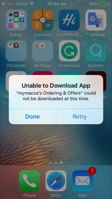 I've got an app on my iPhone which the app store tells me I've got to update it, when I click on update, the app starts to update, which it almost completes, then I get the following message, can anyone tell me what it means? Even though the app seems to have updated ok, the app store is still telling me I've got to update it, & I can't delete the exclamation mark in the red circle.