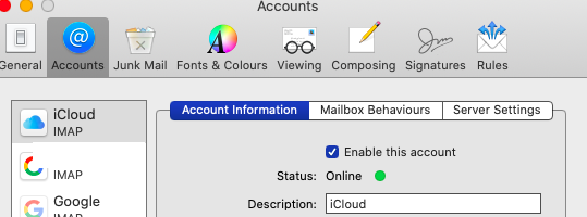 When the enable this account from IMAP account is unchecked the mail disappears from iCloud account from the mail application ( from the inbox ) , but when Apple ID and password is signed in www.icloud.com the mail is still saved on web iCloud account , you can select the mail or many mails and delete to trash / or create a folder there and drag and drop the mail in it .