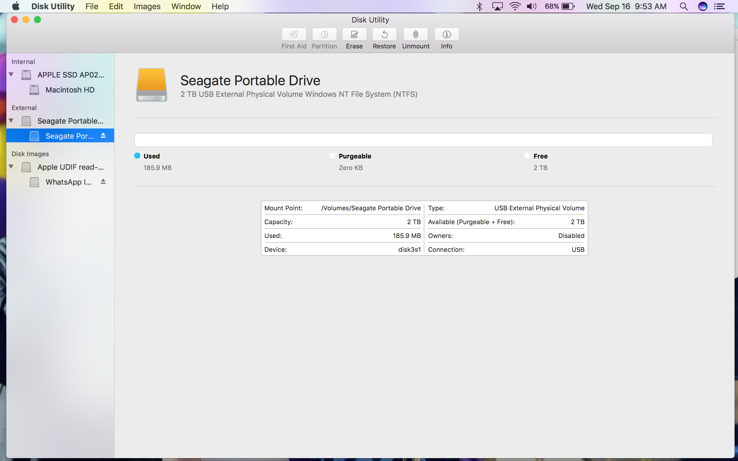 Oh wait, it's NTFS, you can't write to NTFS natively, you need 3rd Party SW or the Erase it to ExFAT if needed for Macs & PCs.