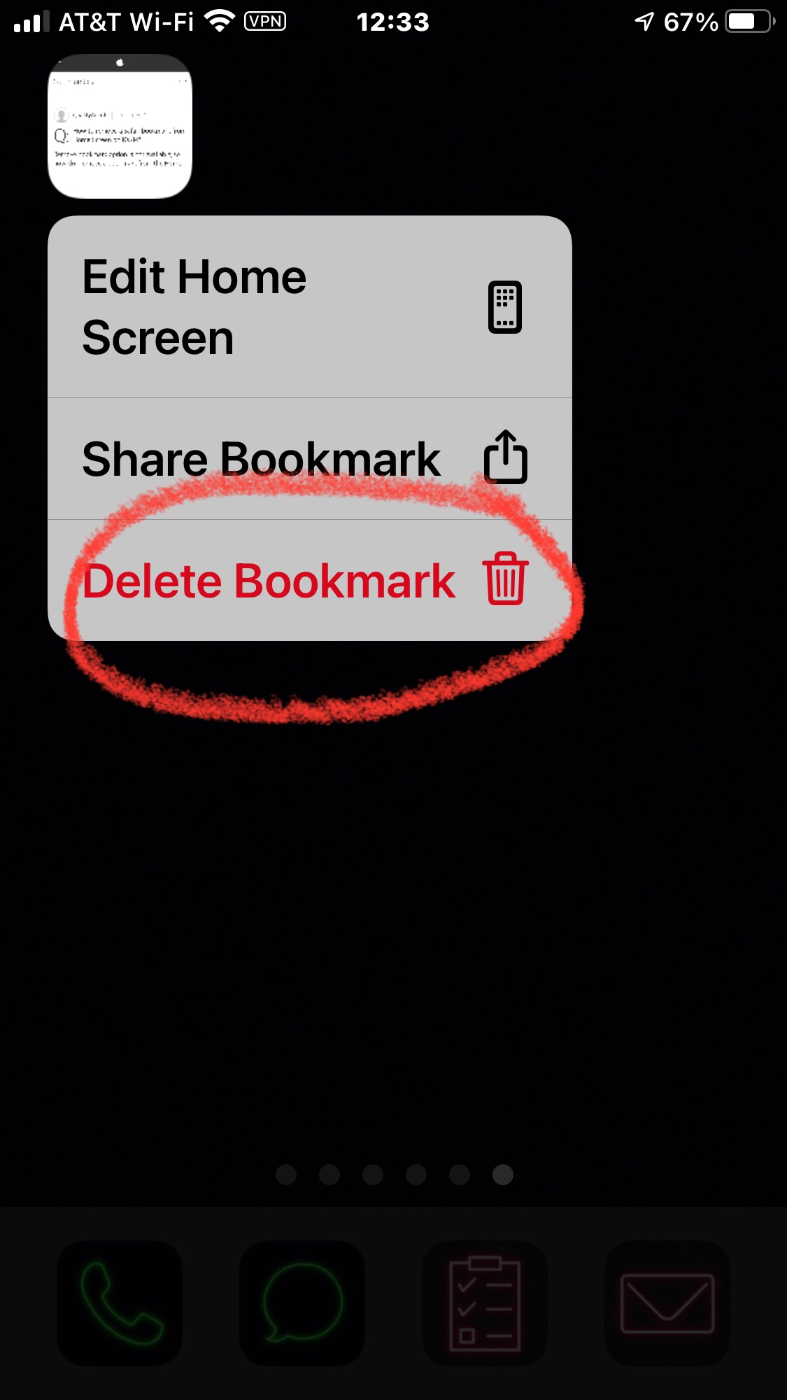 How to remove a Safari bookmark from Home Screen on iOS14?