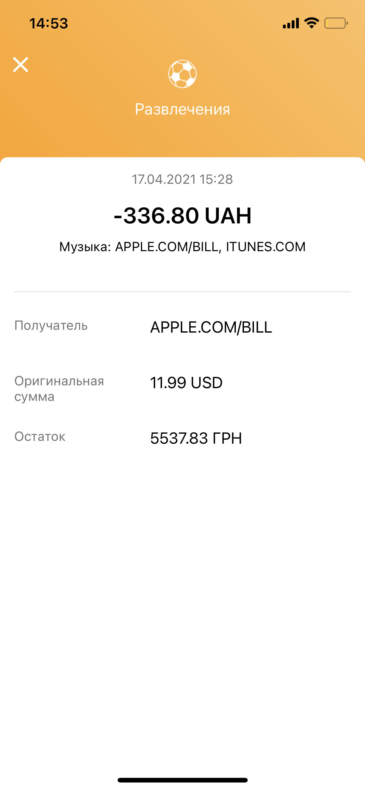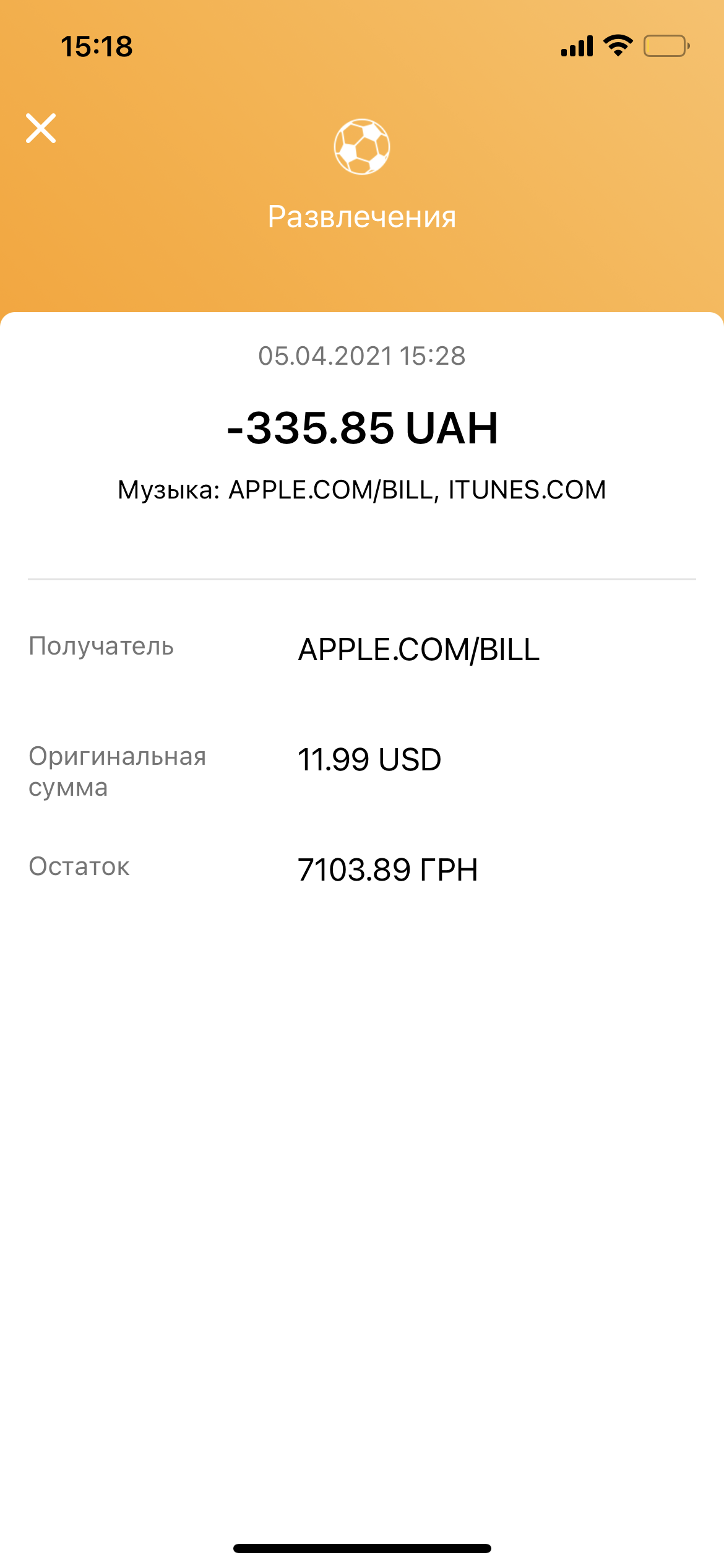 Yerstaday 336 hrn twice were lost from my card for iTunes.And about month ago +-1000 hrn,I don’t remember exactly.