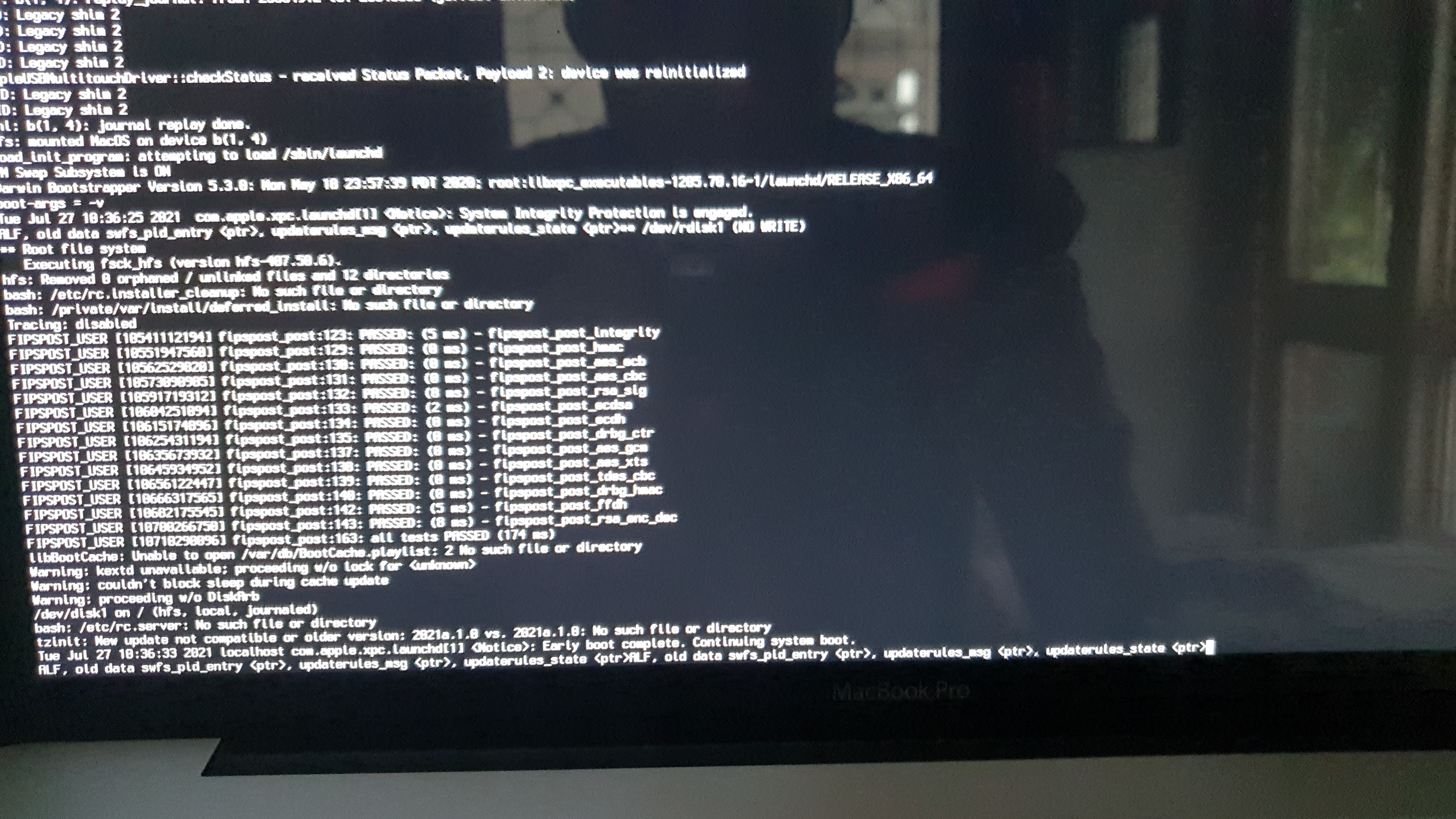 I have tried CMD + v to see anything I could get from the output; I noticed an output which is in the second last line of the screenshot (New Update not compatible or Old version ....)