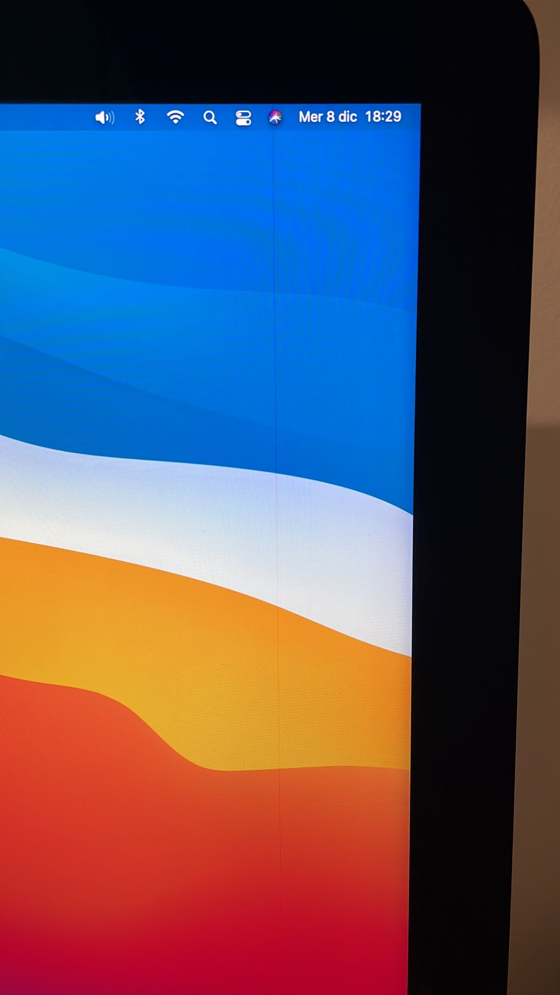 Unfortunately today I noticed that on the right side of the screen of my iMac 21.5 Retina 4K 2019 there is a very thin dark vertical line that crosses it from edge to edge. Looking closely, with certain colors on the screen, I can see near it other three imperceptible vertical lines tendentially green.