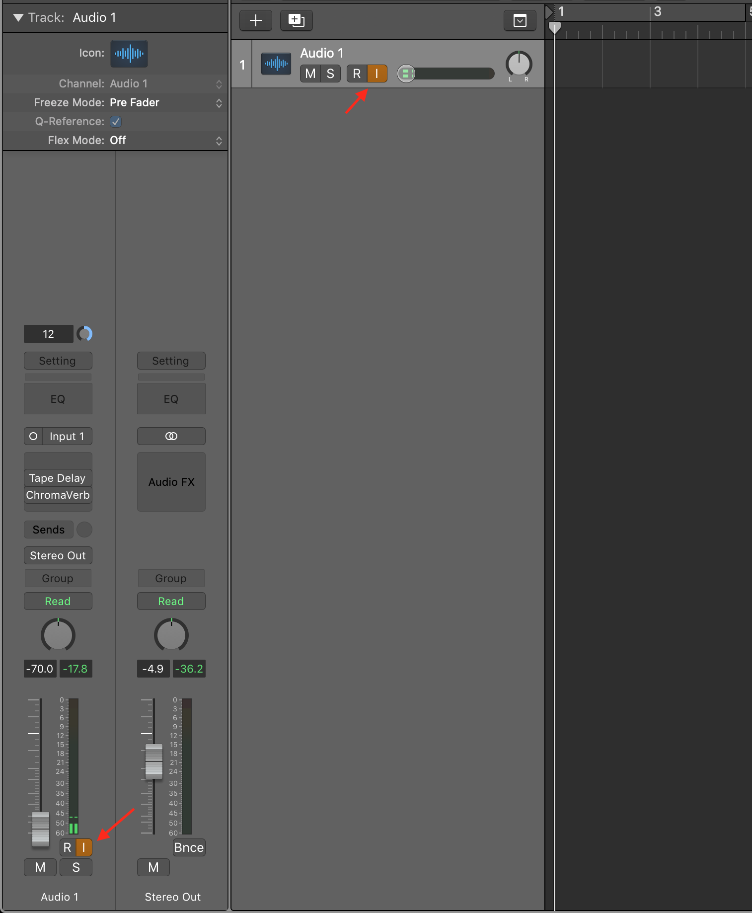 "Turn on Software monitoring and make sure you have the Input monitoring button (Orange I) on in the track header."