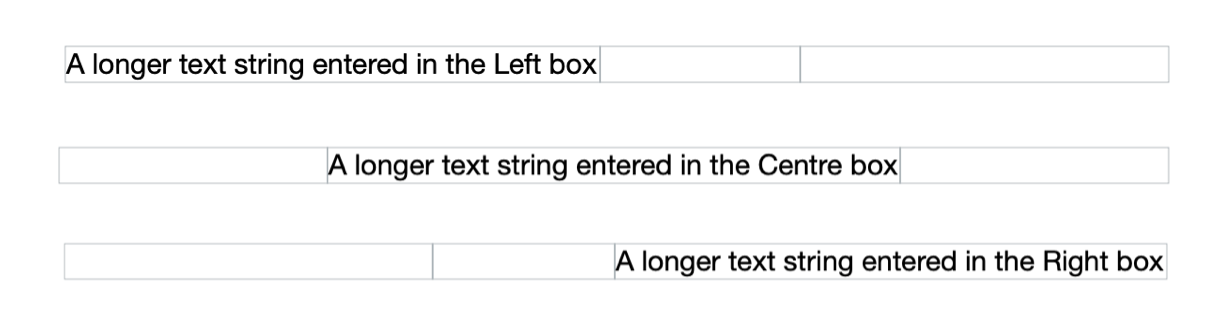 If you enter a longer text string into one of the boxes, it will flow into the adjacent box(es), maintaining the alignment of the box into which it has been entered.