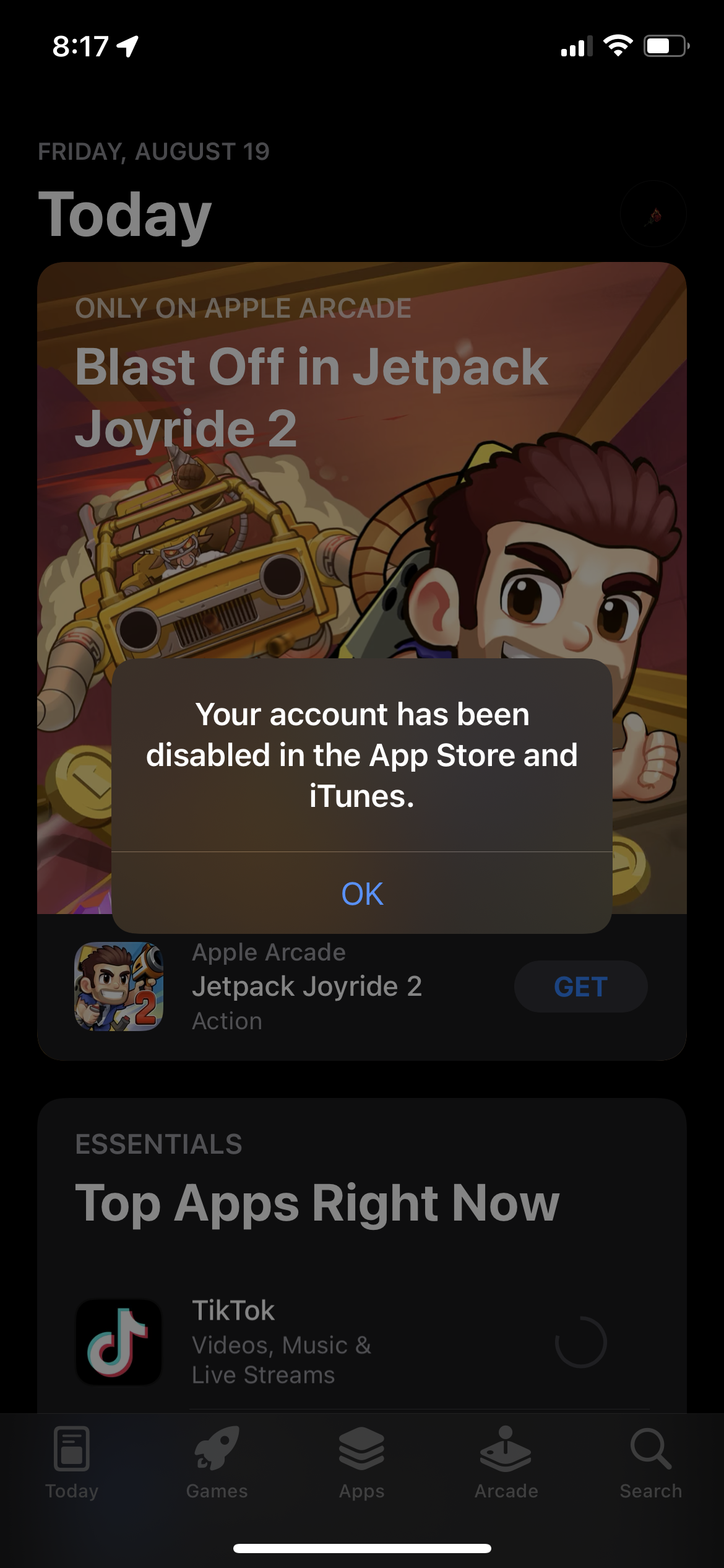 If you see a message that says "Your account has been disabled in the App Store and iTunes", contact Apple Support for help.