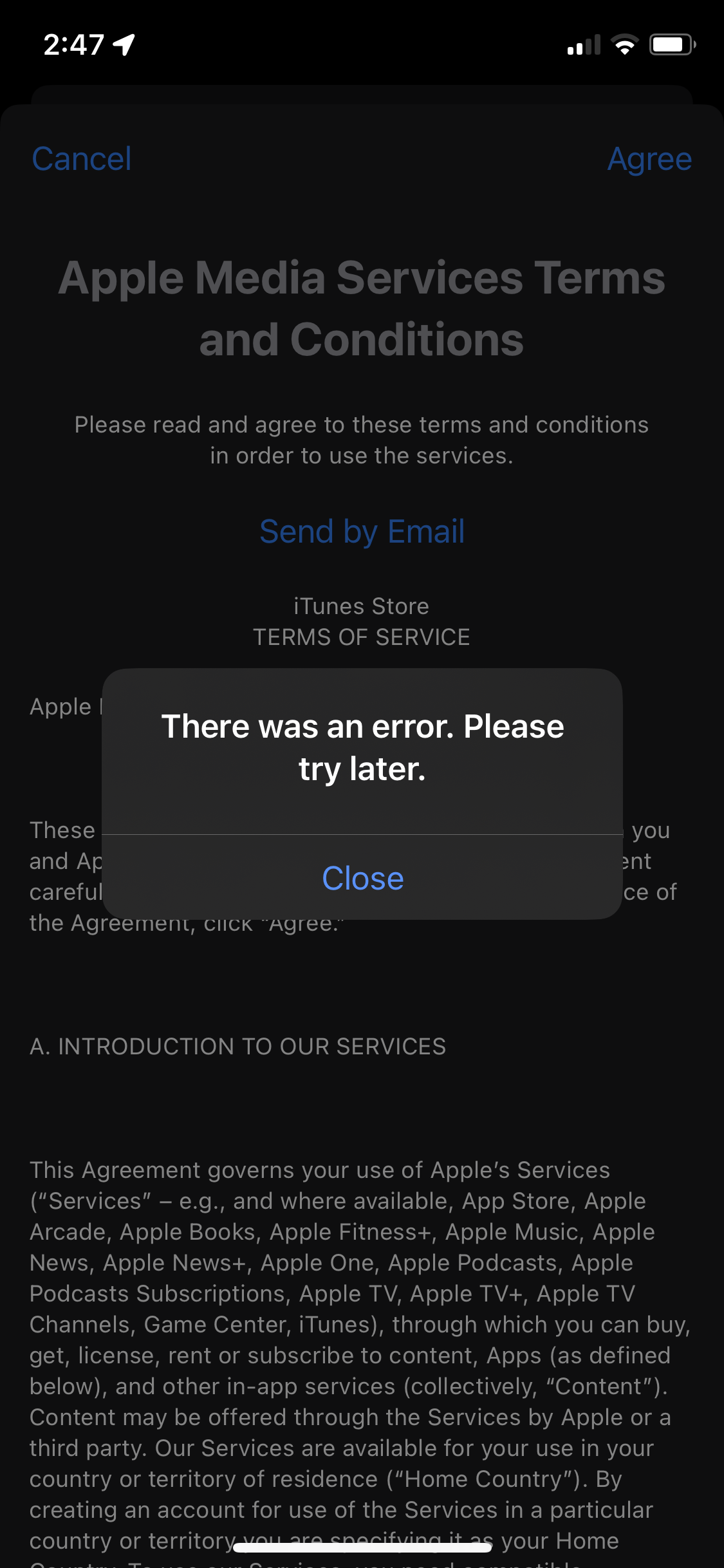 There was a bug. It said “There was an error. Please try later.” whenever I tried to click “Agree”. I have to agree so that I can update all the apps I have in my apps store. Please fix this issue immediately thanks.