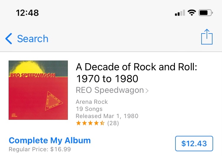 When purchasing the rest of the songs from an Album, the reduced ‘complete my album’ cost for already purchased songs is correct. Nevertheless, when I click to purchase at the reduced cost, the cost increases to a ‘One-time charge’ for the complete album.