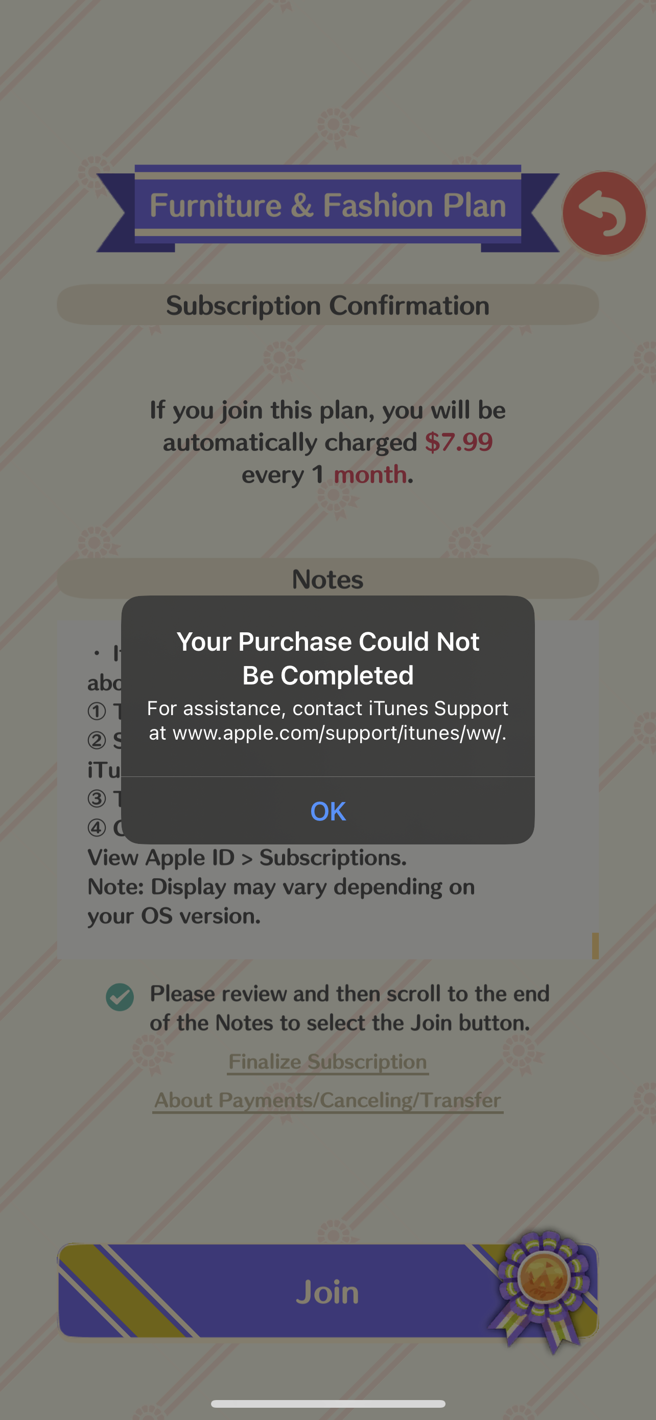 I’m trying to purchase a subscription on pocket camp, it keeps redirecting me to flip tact iTunes but iTunes is not for this game? I’ve been trying for days I have a payment method on file and money in my account and have even checked to see if it was my account or the game and I can purchase things on anything else other than this app, I contacted them multiple times and nothing