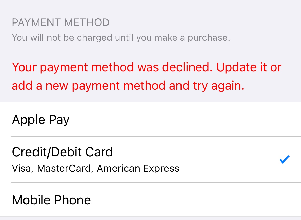 I bought a new Iphone, transferred all the information from the old phone to the new one, and now I have problems with payment.I enter my bank card details, but the system does not accept.On 19/02/2023 you must be charged the amount of the subscription fee in the amount of 2.99 € for the tariff plan