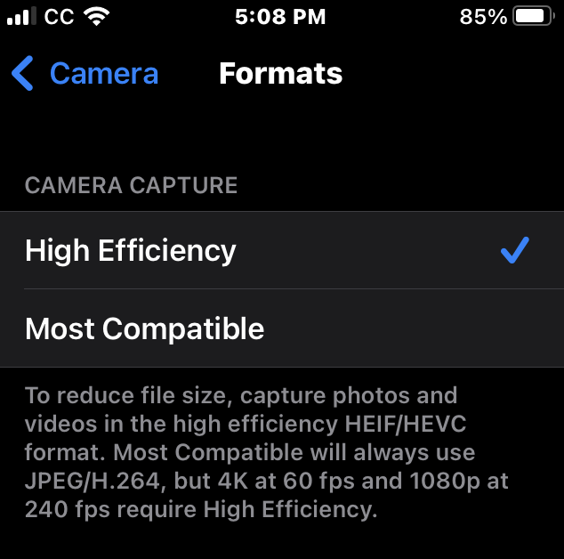 You can also change the format the iPhone uses for images. On your iPhone, Settings > Camera > Format has this option: