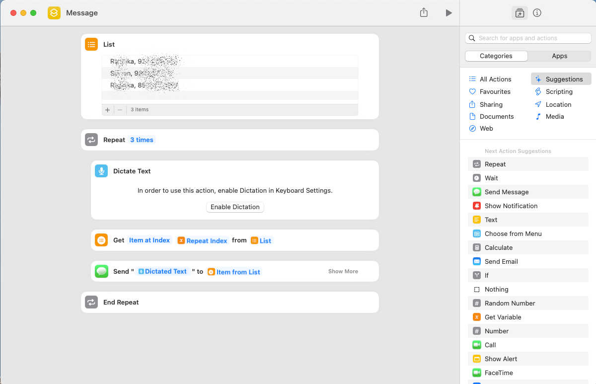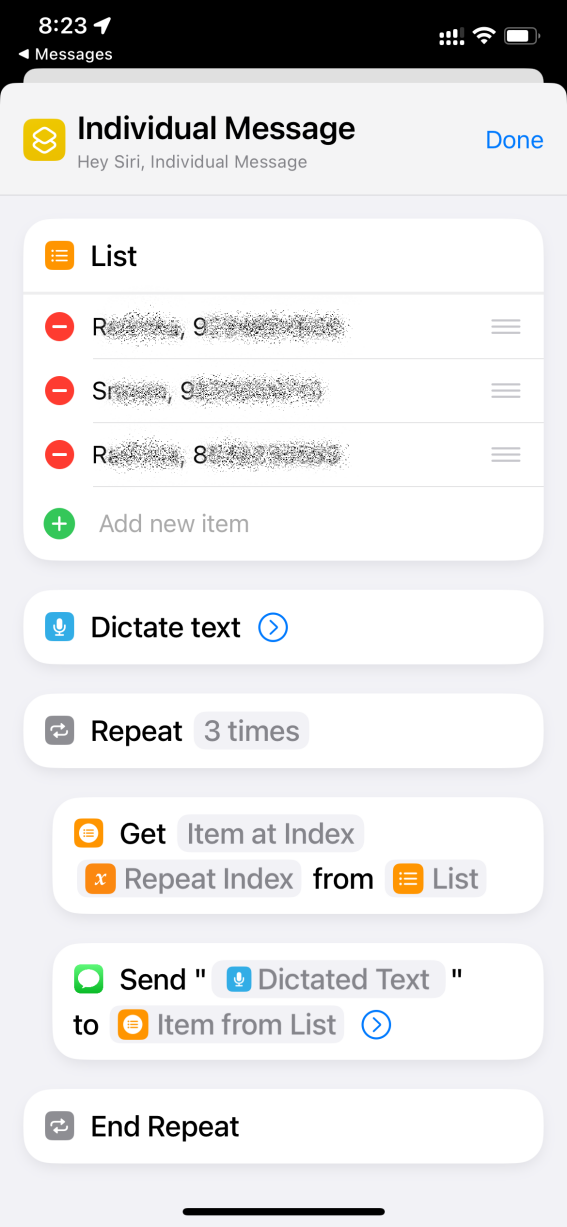 In answering a question for DialingByName I decided to attempt to create a shortcut that would allow him to send an iMessage to multiple recipients as individual conversations rather than a group message.