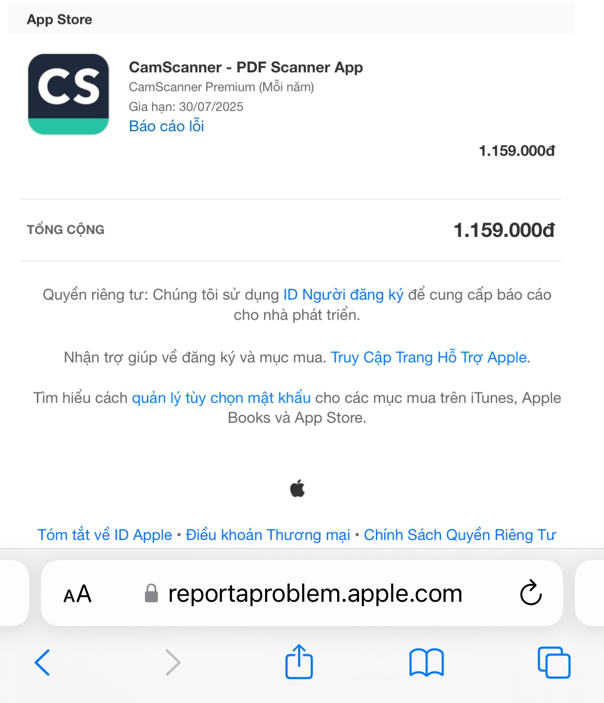 xin chào đội ngũ Apple. Tôi đã gửi yêu cầu hoàn tiền và đã bị từ chối.. Tôi đã sử dụng miễn phí nhưng quên gia hạn, tôi không hề có *** cầu muốn mua hay sử dụng tiếp, gói đăng kí thông báo đã huỷ nhưng tại sao tôi không được hoàn tiền...? **** Apple xem xét và hoàn tiền lại cho tôi