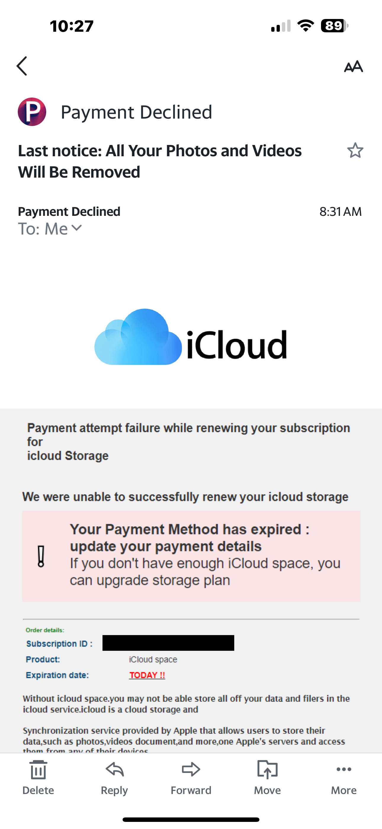 • If you receive a suspicious email that looks like it's supposed to be from Apple, please forward it to reportphishing@apple.com.1
