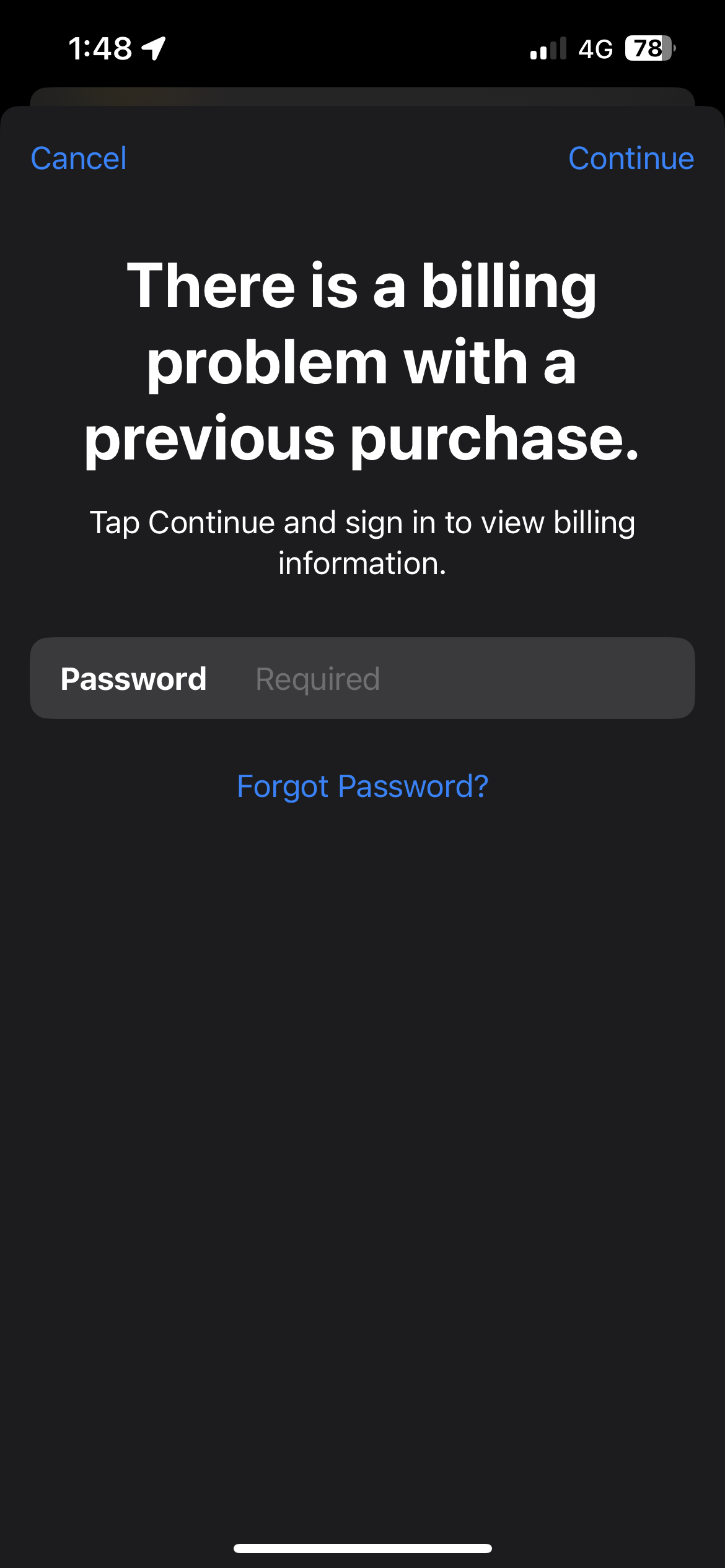 If a message says 'billing problem with previous purchase' or 'verification required'