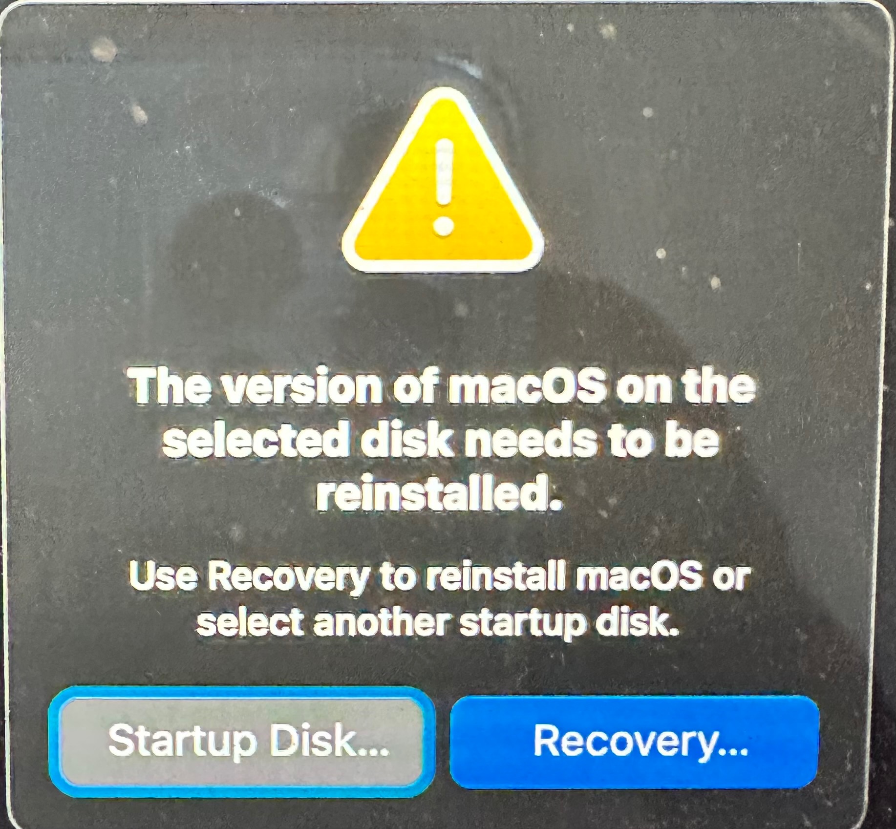... and this is exactly the situation you are now in. Your locked, crypto-protected system Volume has failed its integrity check, and your MUST re-install a fresh copy (and it will be crypto-locked anew) to make progress.