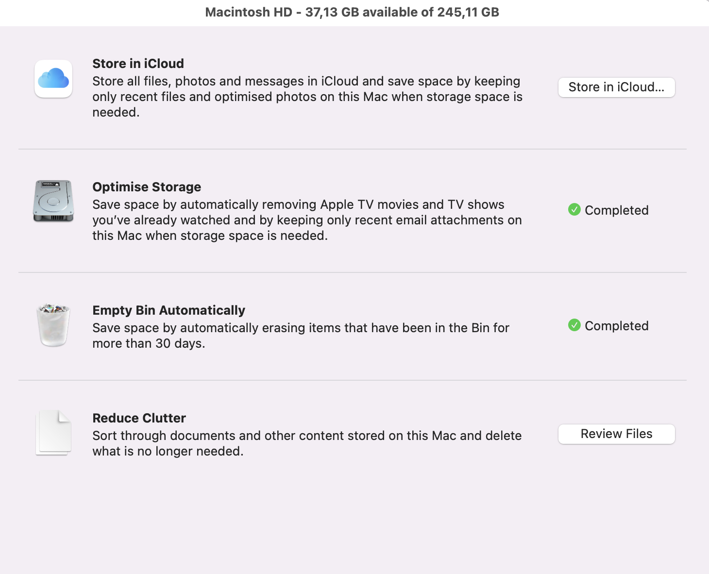 Hello everyone, I recently ran into a problem with Mac and iCloud storage. At the moment I have 256 GB of Mac storage and 200 GB of iCloud plus. I synced about 100 GB of files with Windows using the icloud application and then launched my macbook directly. As a result, it started downloading files and the disk space decreased sharply (the storage of the poppy itself, not iCloud). How to solve this problem? What happens to open files that were downloaded from icloud to mac. As far as I know, decoding takes place on the iPhone and after a while the files from the iPhone storage are already uploaded back to iCloud. What about Mac? Many thanks in advance to everyone for the help!