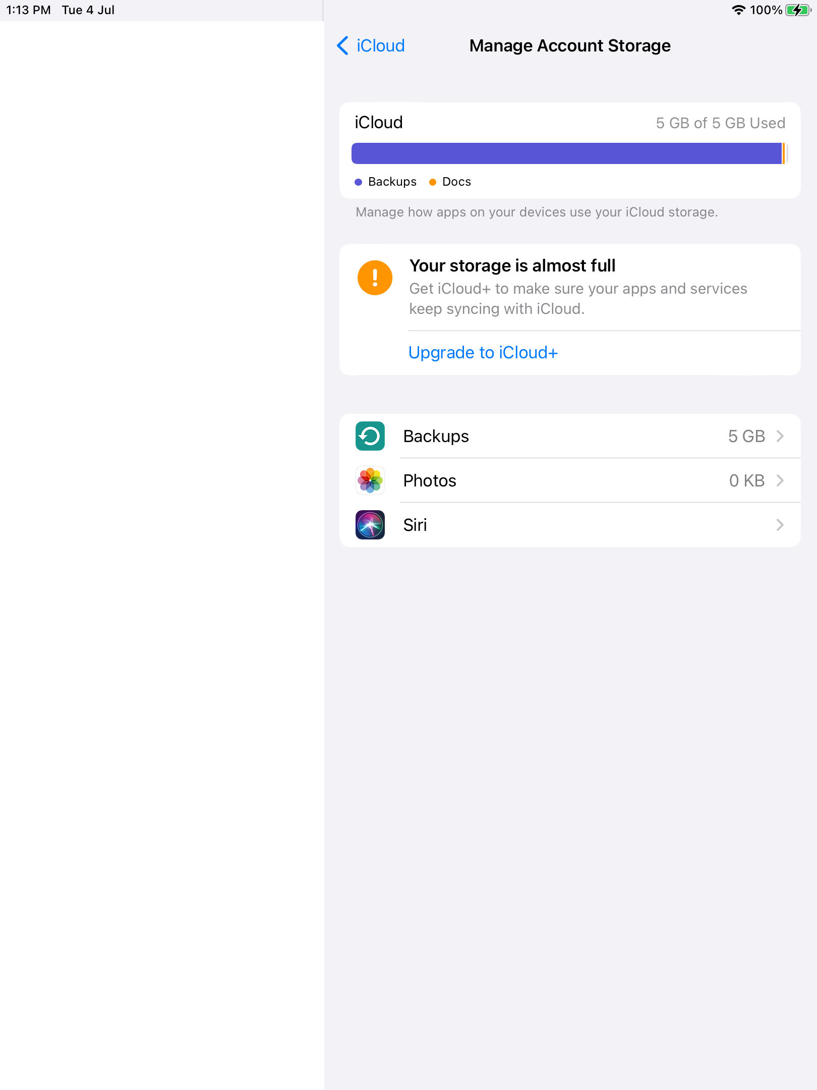 I am currently using iCloud free plan which gives you 5 GB storage. When I go to Manage Storage, it is showing that my entire 5 GB is full by iCloud backups. But when I tap on Backups it shows there is only one backup and the size is 0 KB. Now I am not able to clear space from my storage which I need to badly.