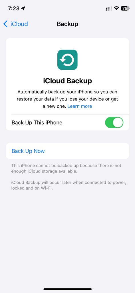I'm using iPhone 11 Pro with iOS 17. Already I've subscribed 50GB space from iCloud & it's having around 45GB space. but when I run "Back up now" in phone, it's getting failed due to the insufficient space in iCloud. what can be the reason for this issue?
