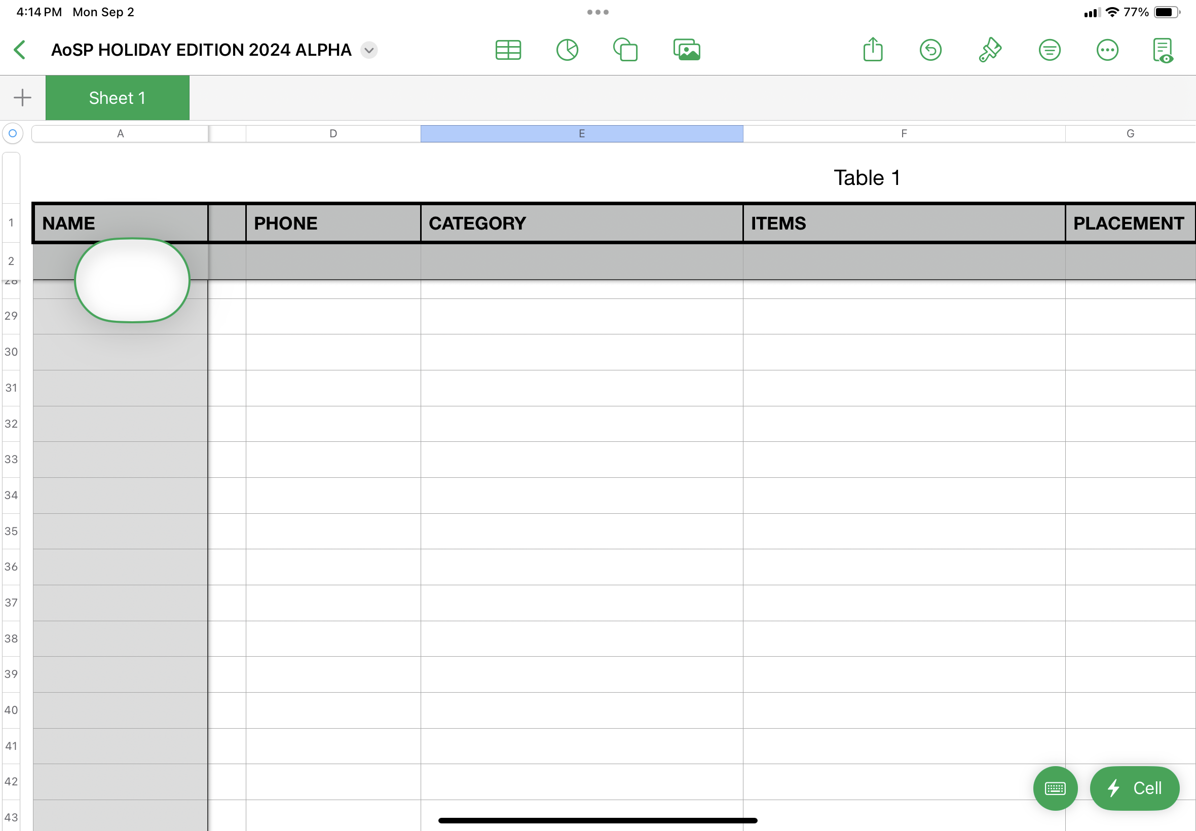 While working on a Numbers spreadsheet, I tapped a cell and a large white circle popped up around that cell. The only way I’ve found to get rid of it is to quit the app completely. When I open it again the circle is gone. I’ve worked with Numbers for years, and this just started today.