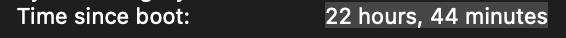 You can check the "Time since boot:" of your Mac by opening the Terminal app and typing uptime followed by the enter key.