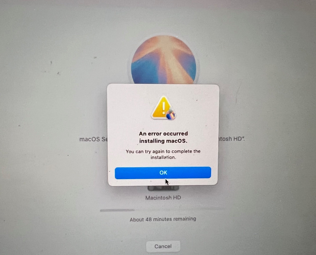 However, I have tried to install Sequoia, Ventura and Monterey and they all fail. Every time it fails showing 8 minutes left with the error message, "An error occurred installing macOS. You can try again to complete the installation." The Mac Mini is connected to the Internet with an Ethernet connection, so I don't think the connection is the problem. I have run the Disk Utility first aid tool numerous times and not come across any problems. I have also tried the install in Safe Mode.