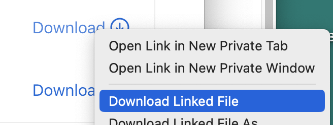 1: Right click on the download button and choose Download Linked File from the contextual menu.