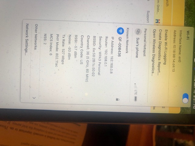 Here's a photo of the wifi parameters. If it's too blurry to read, I can try to get a clearer image. And unfortunately the image turned from verticle to horizontal. Is this the information you asked for?