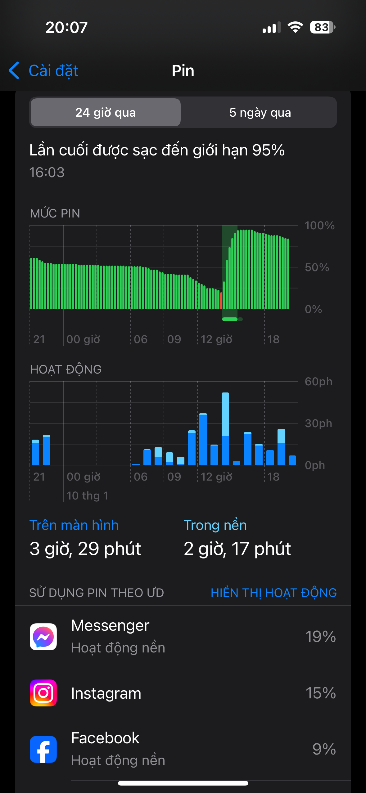 I've just gotten a new iPhone 15 128gb in Vietnam and activated it on Mon (6-Jan 2025). This iPhone was manufactured in Sep 2023 and a brand new one. I notice that for every 4-5 mins of using, the battery drops by 1% (it still has 100% max capacity). Sometimes when I turn off the device and turn back on, I saw the battery dropping by 1% too. Today I set the battery limit at 95% and got charged at 95% @4pm. After using a few time (but not continuously), the battery is now at 83% @8:25pm. I mainly use the iPhone for social media channels, workchat apps, mail and sometimes TikTok.