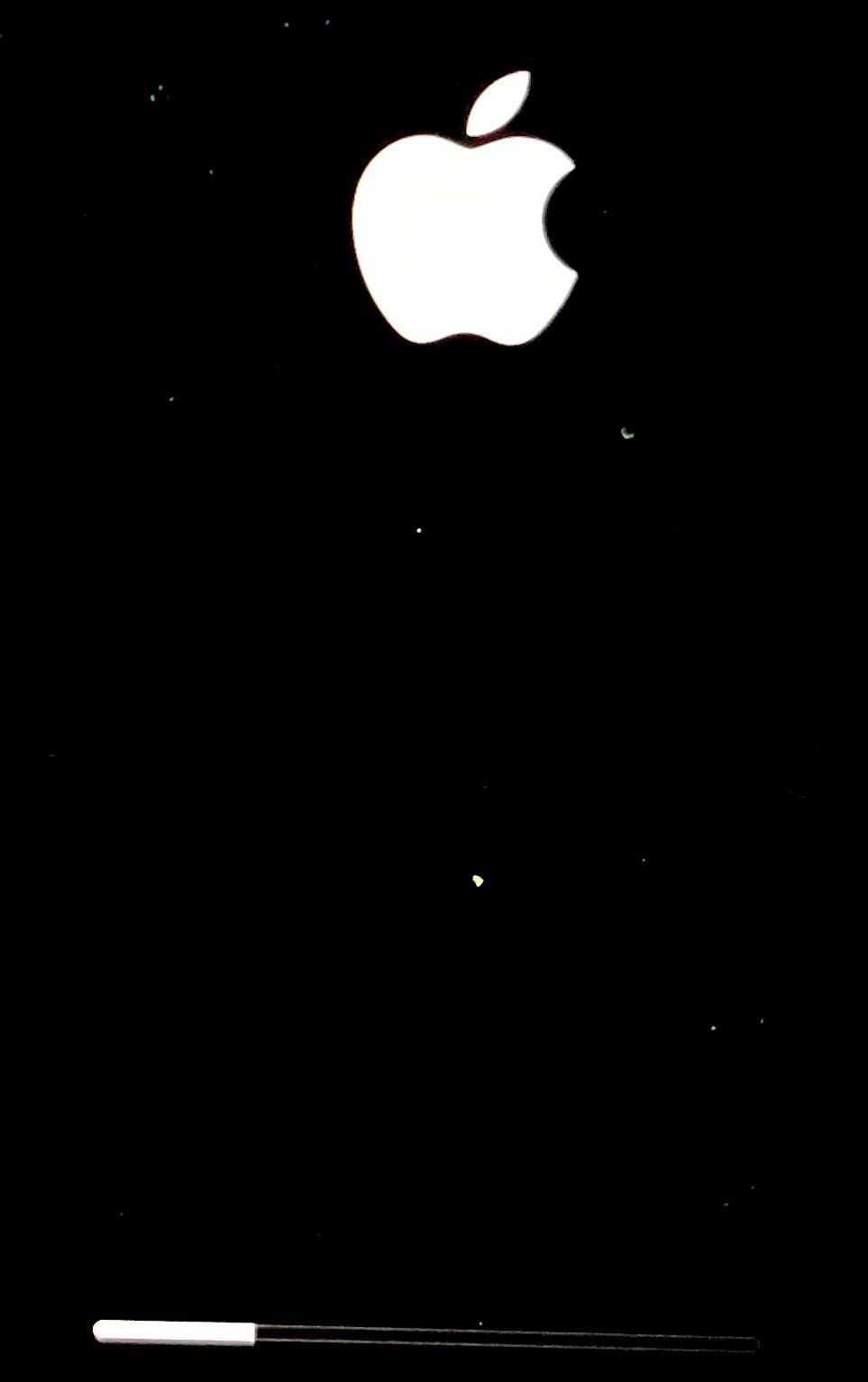 Then I restart the Mac (quick press of top right key) and I get a black screen with white Apple logo and a quickly progressing progress bar [2] that leads me back to my custom log in page.