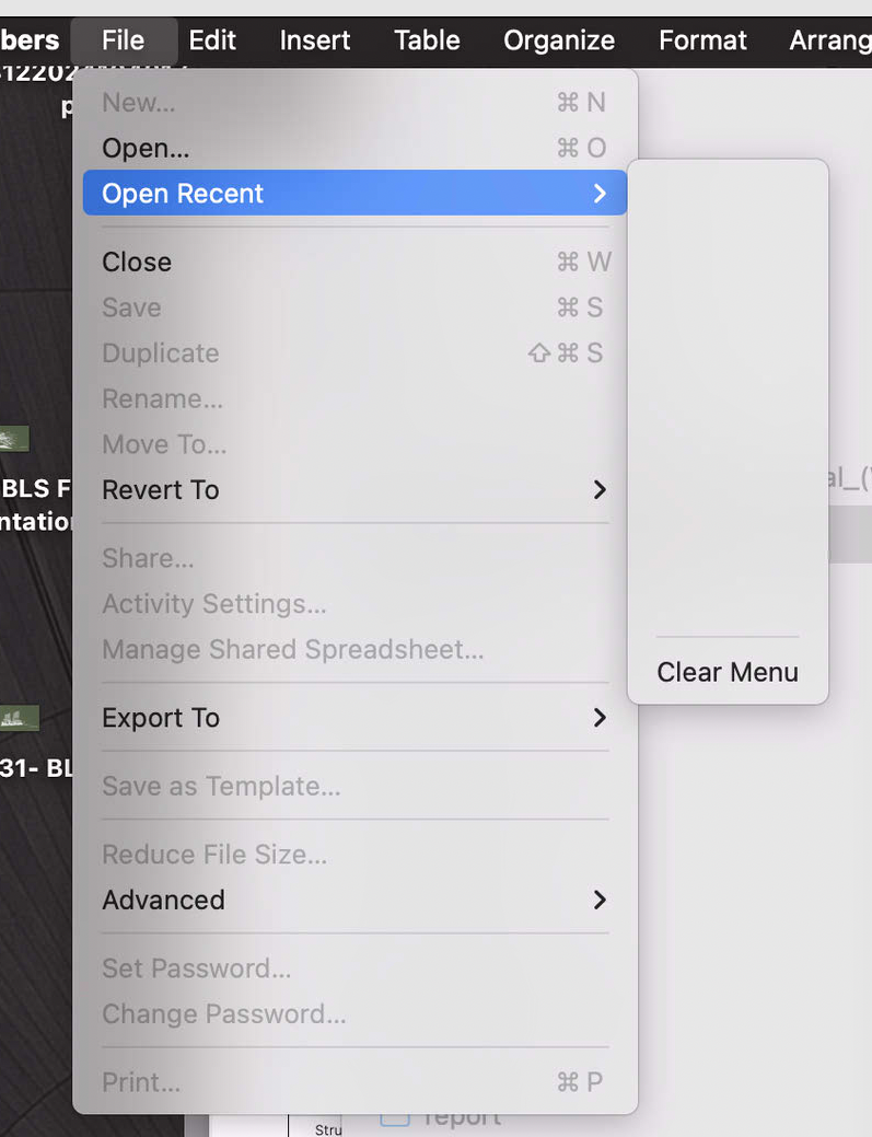 I'm not sure what is going on but Numbers' "Open Recent" is all empty. I can select them individually but if i click it i get an error saying can't open Null.