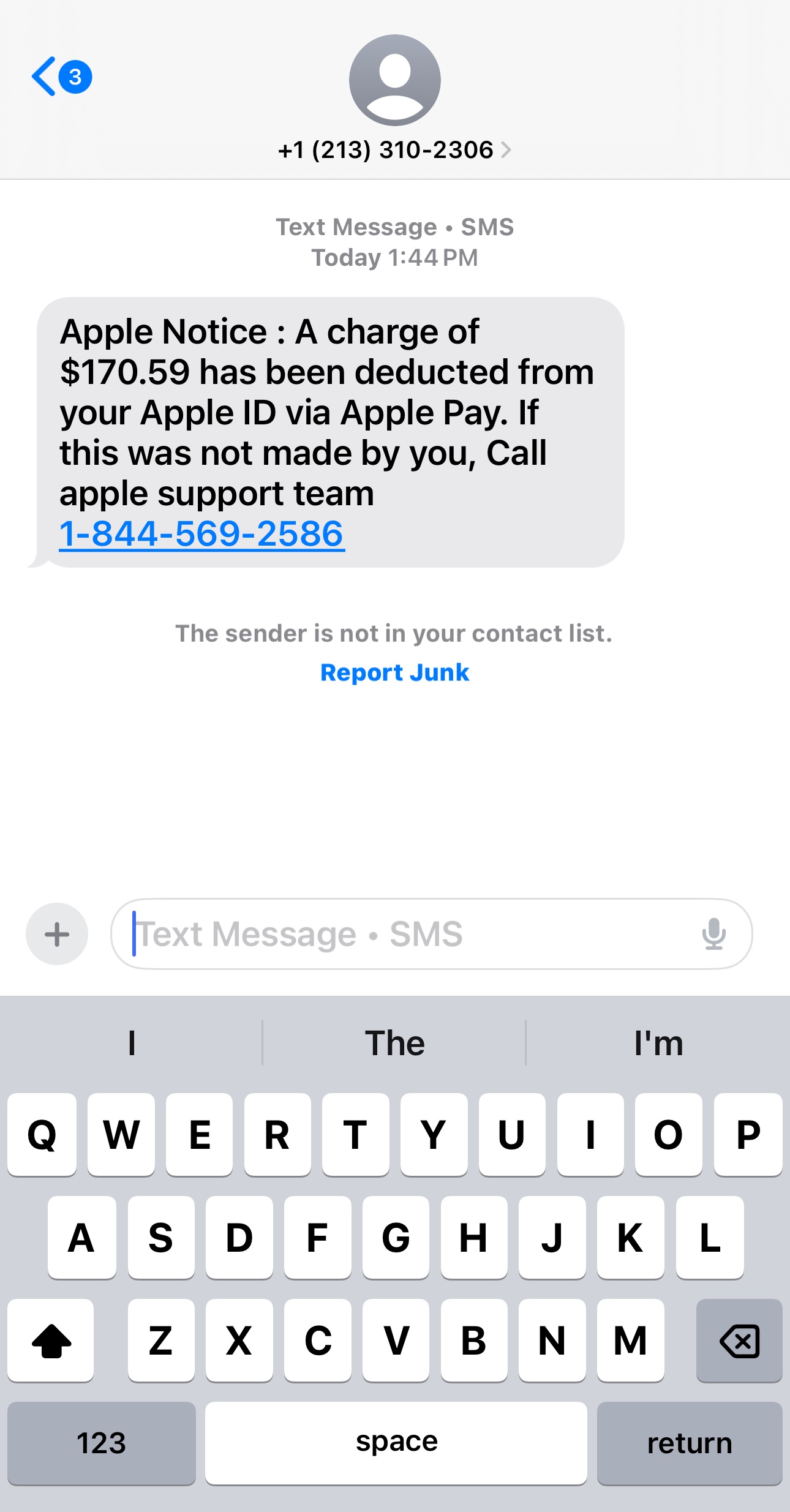An Apple Pay Transaction of $446.89 at the Apple Store was detected.If this is Incorrect Please Contact Support Team at 1-8**-7**-***8