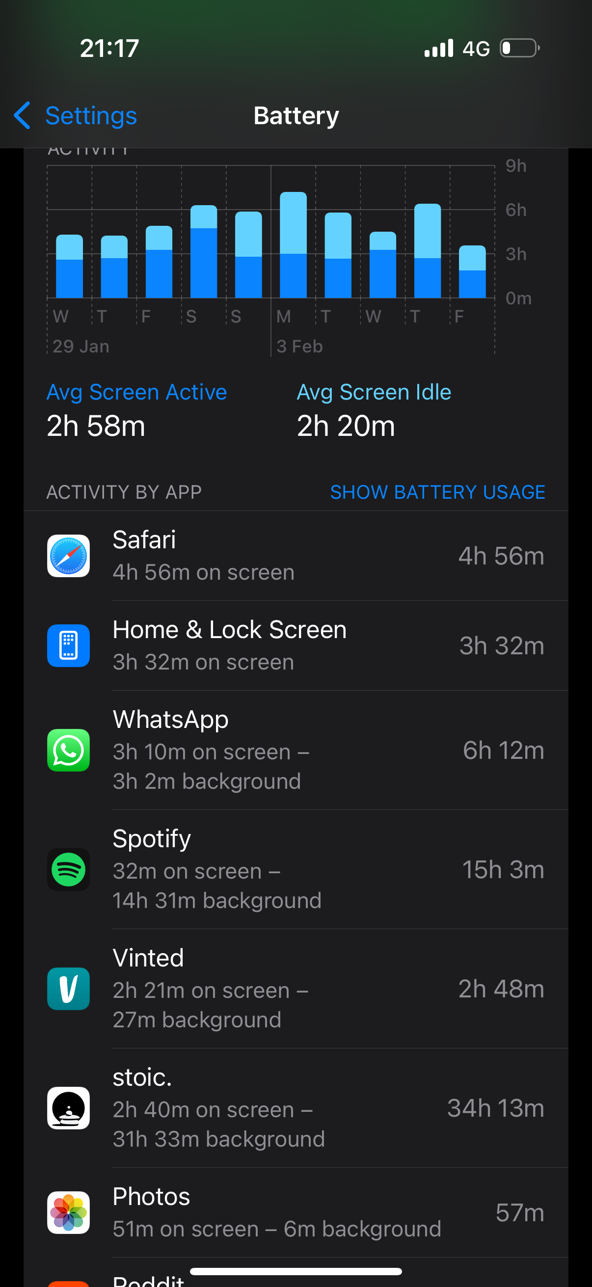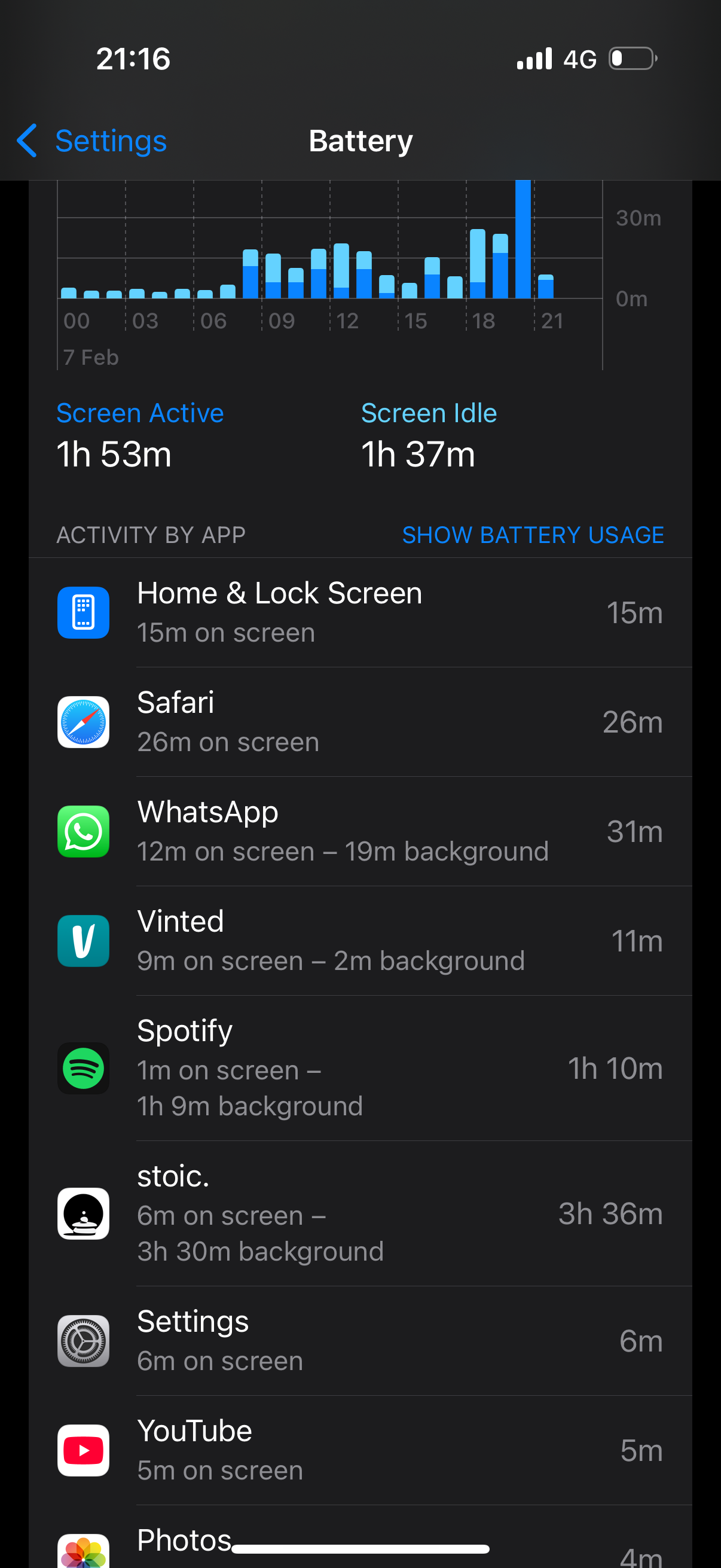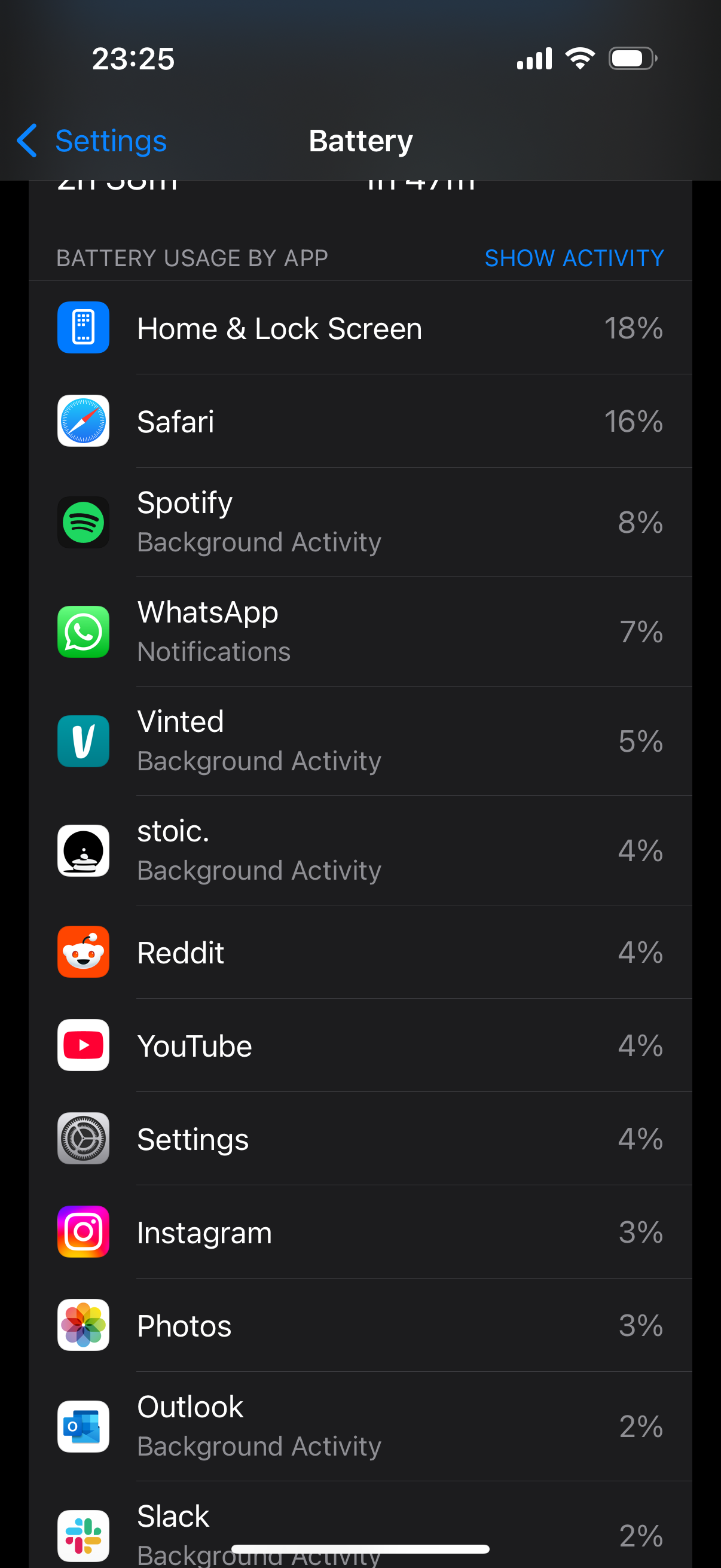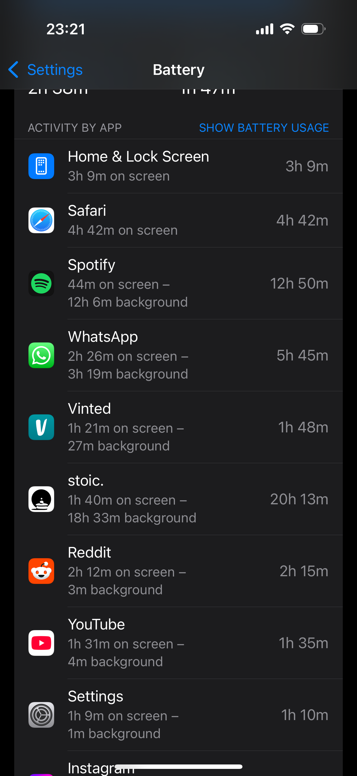 Stoic also has an AI component I notice. AI can consume a lot of battery and that may be a lot of the background activity.