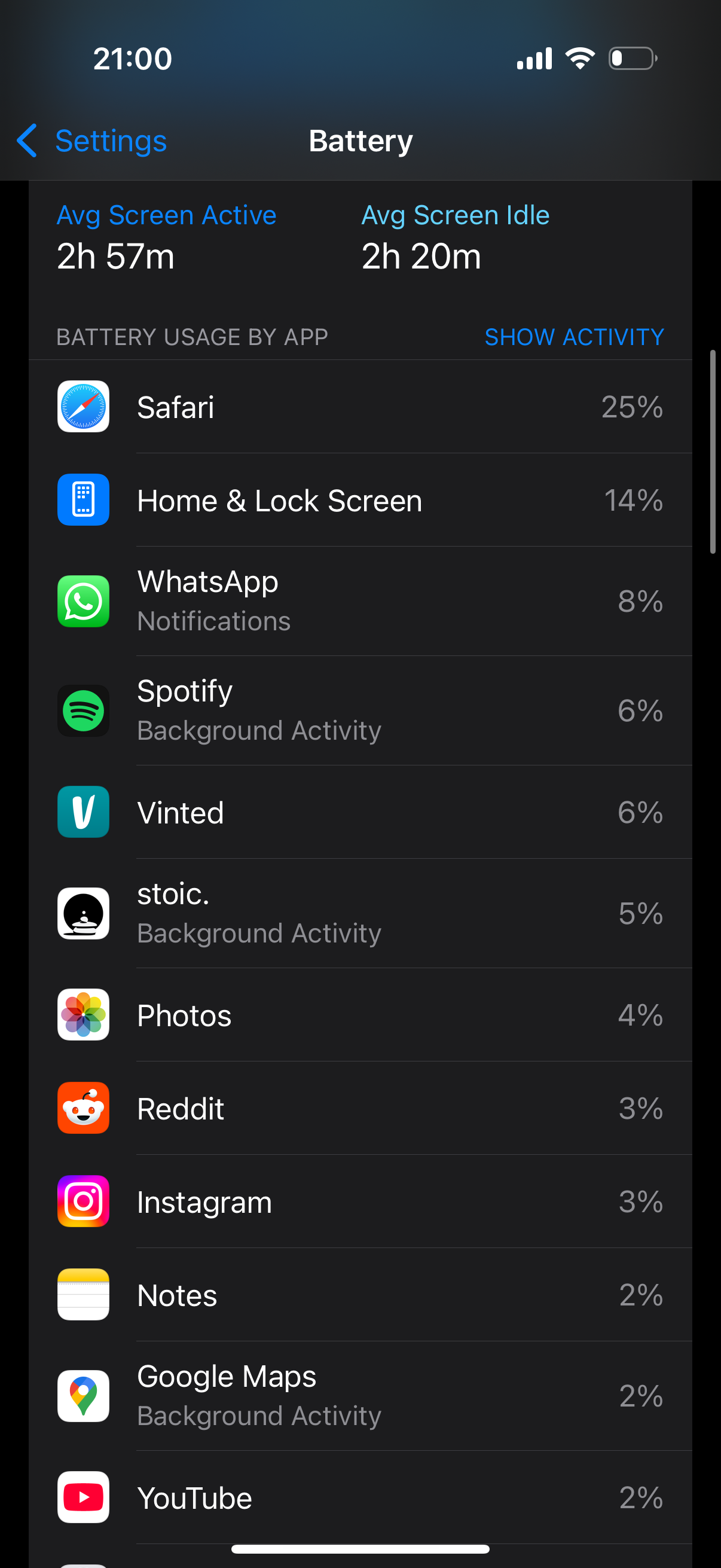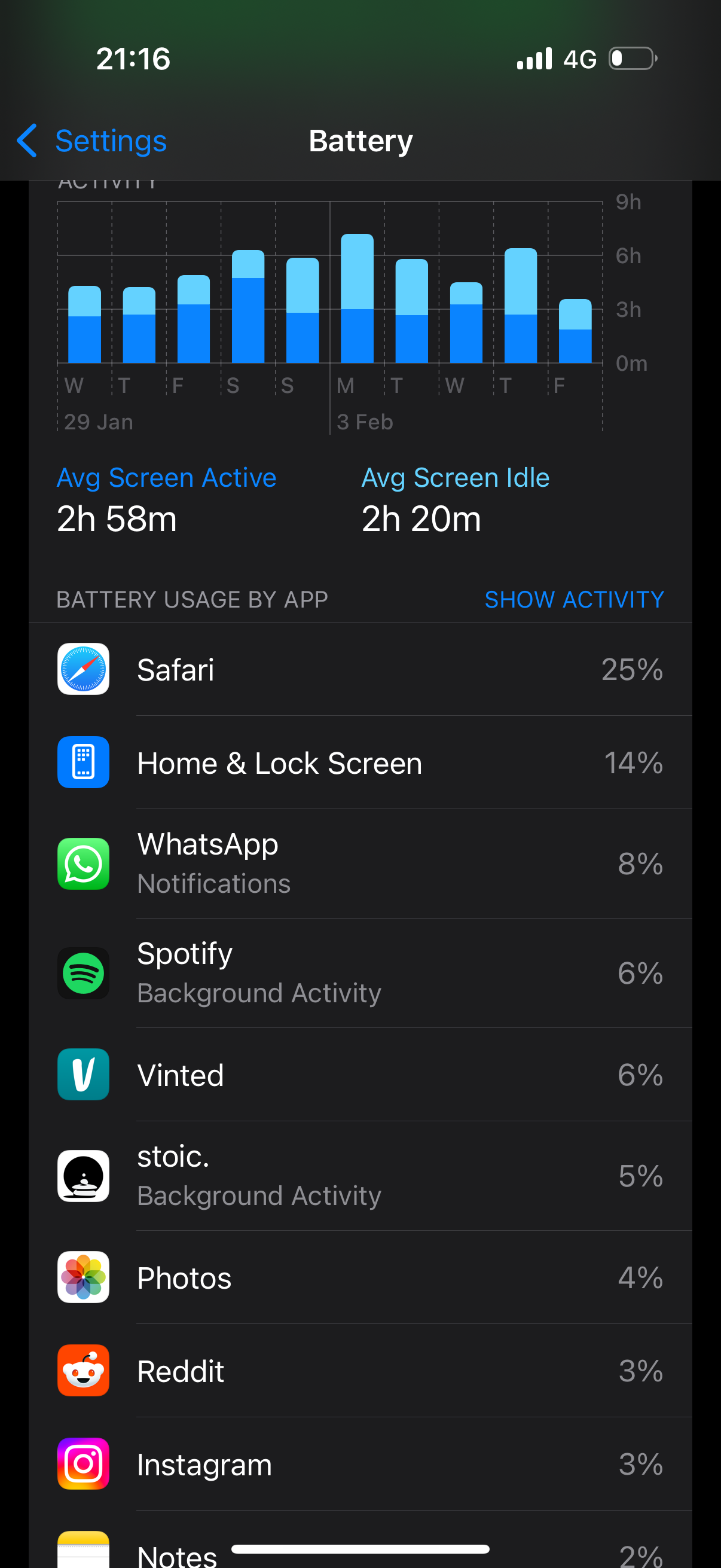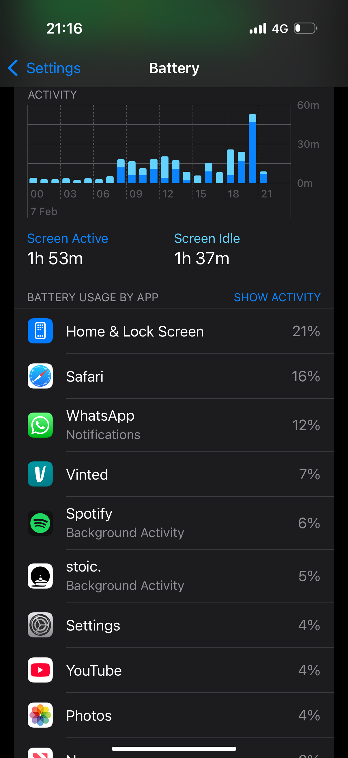 Stoic also has an AI component I notice. AI can consume a lot of battery and that may be a lot of the background activity.
