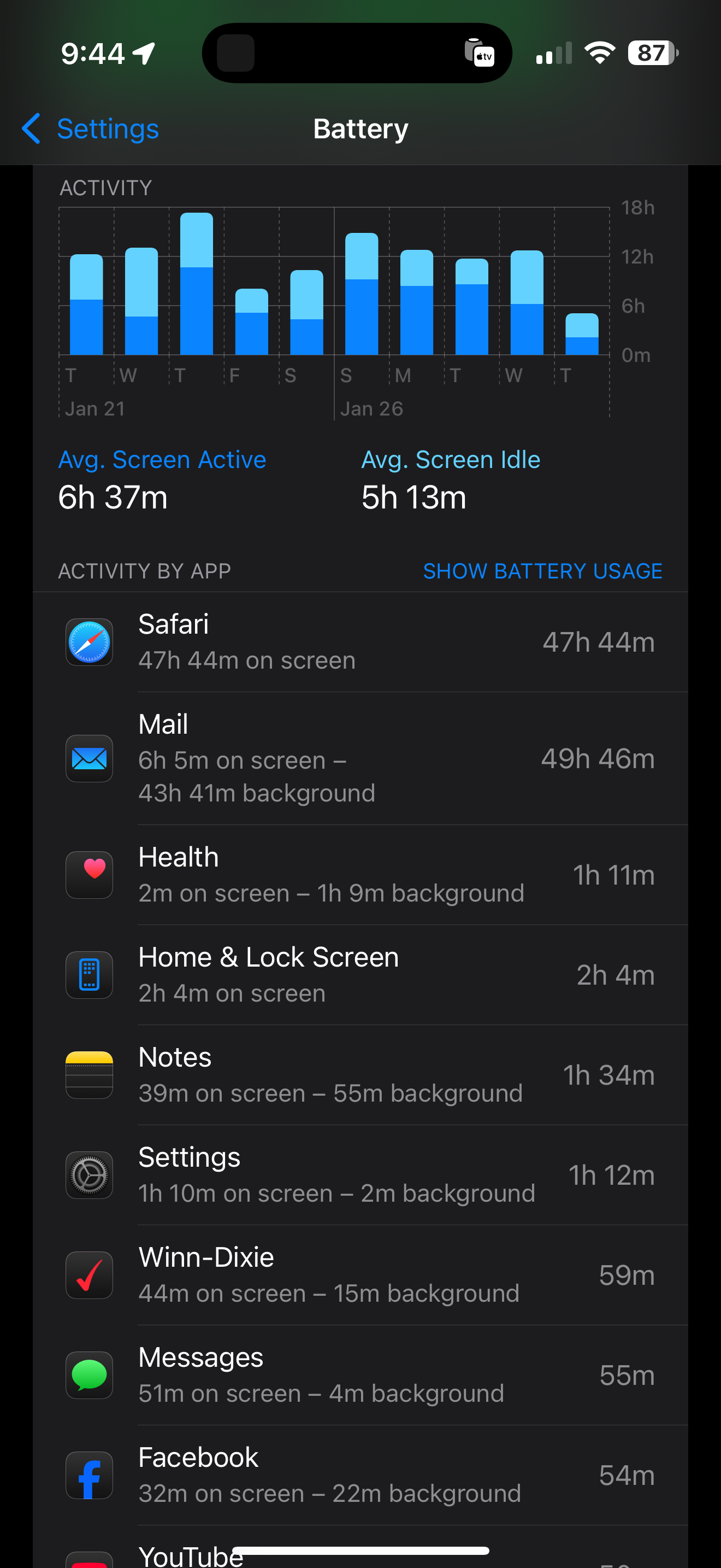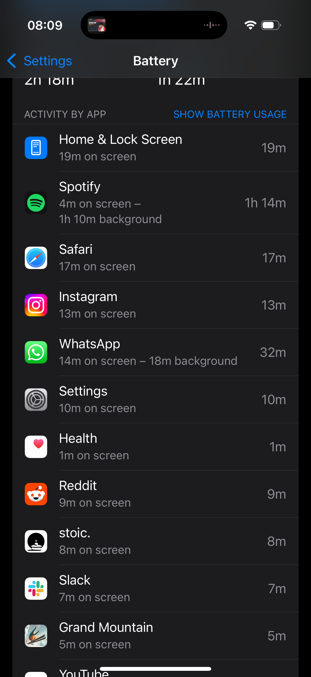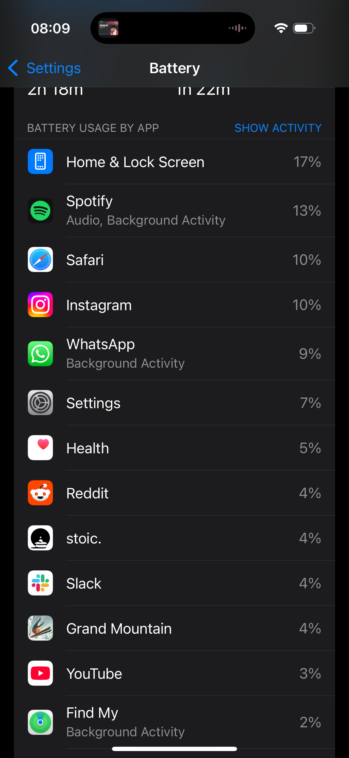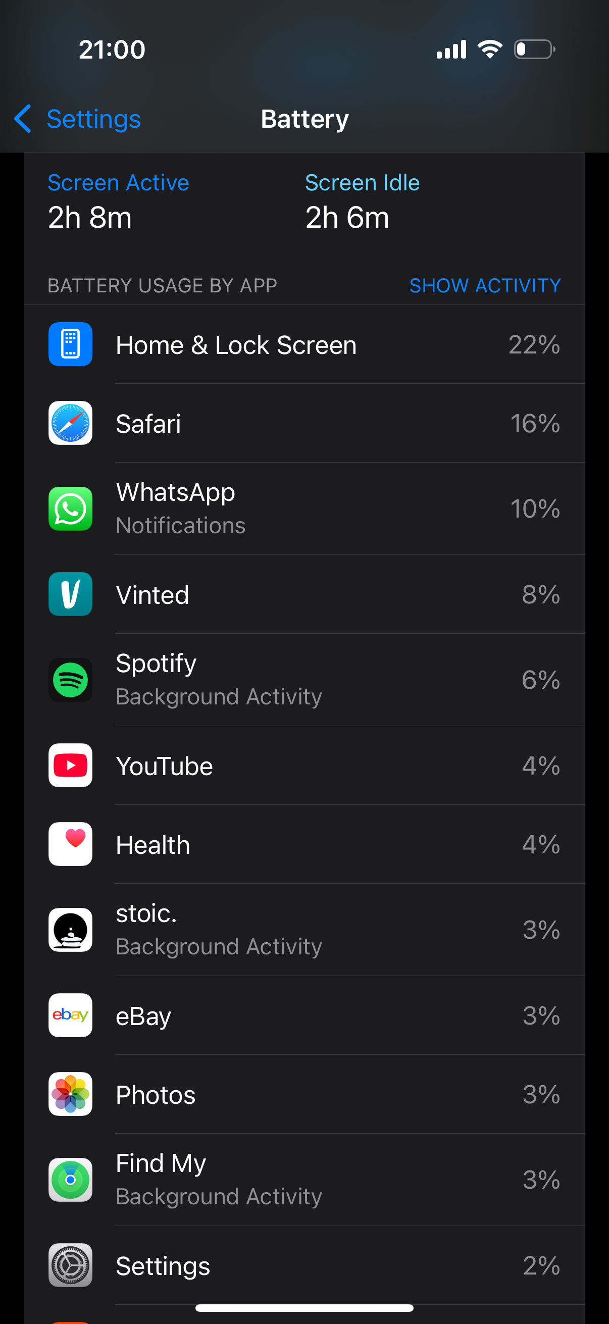 Stoic also has an AI component I notice. AI can consume a lot of battery and that may be a lot of the background activity.