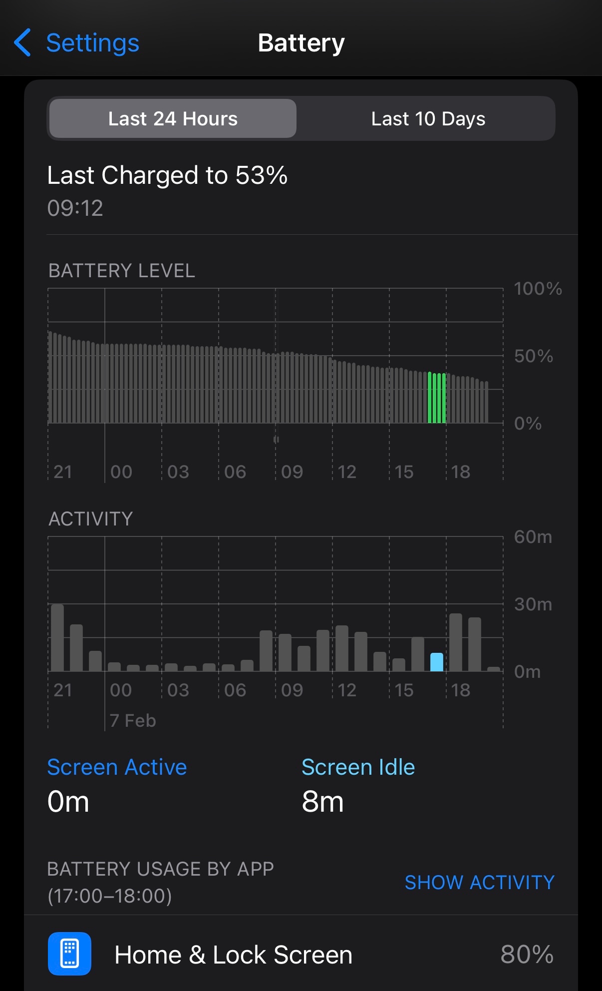 What does the last 24 hours look like for the apps? A lot of the Home and Lock Screen could be at the start of the 10 days and have settled down the last few days.