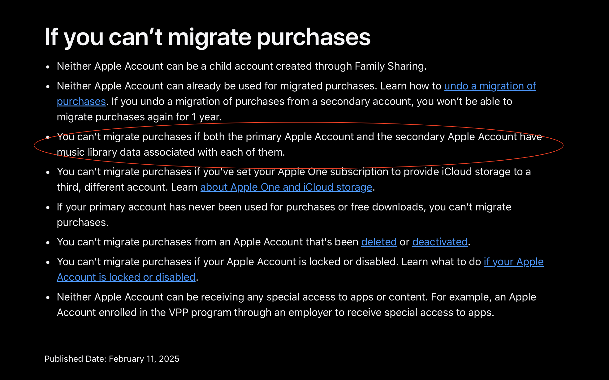 Also, the warning about "You can’t migrate purchases if you’ve set your Apple One subscription to provide iCloud storage to a third, different account." does not make sense. I have the 2TB plan, and my whole family uses it. That's the whole point of the premium plan!