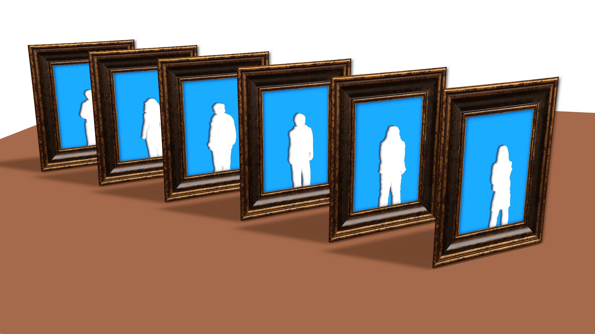 For example, creating a crowd of 15-20 different 3D cardboard silhouettes of standing persons scattered on the same floor.