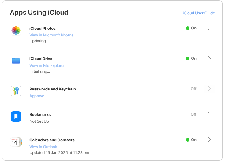 I have tried completely erasing anything Apple on this device and reinstalling the latest versions of iCloud and iTunes with zero luck, if anything, worse. Before it had an old many months old image of my iCloud drive and photos and would be stuck on "Updating", now there is nothing at all.