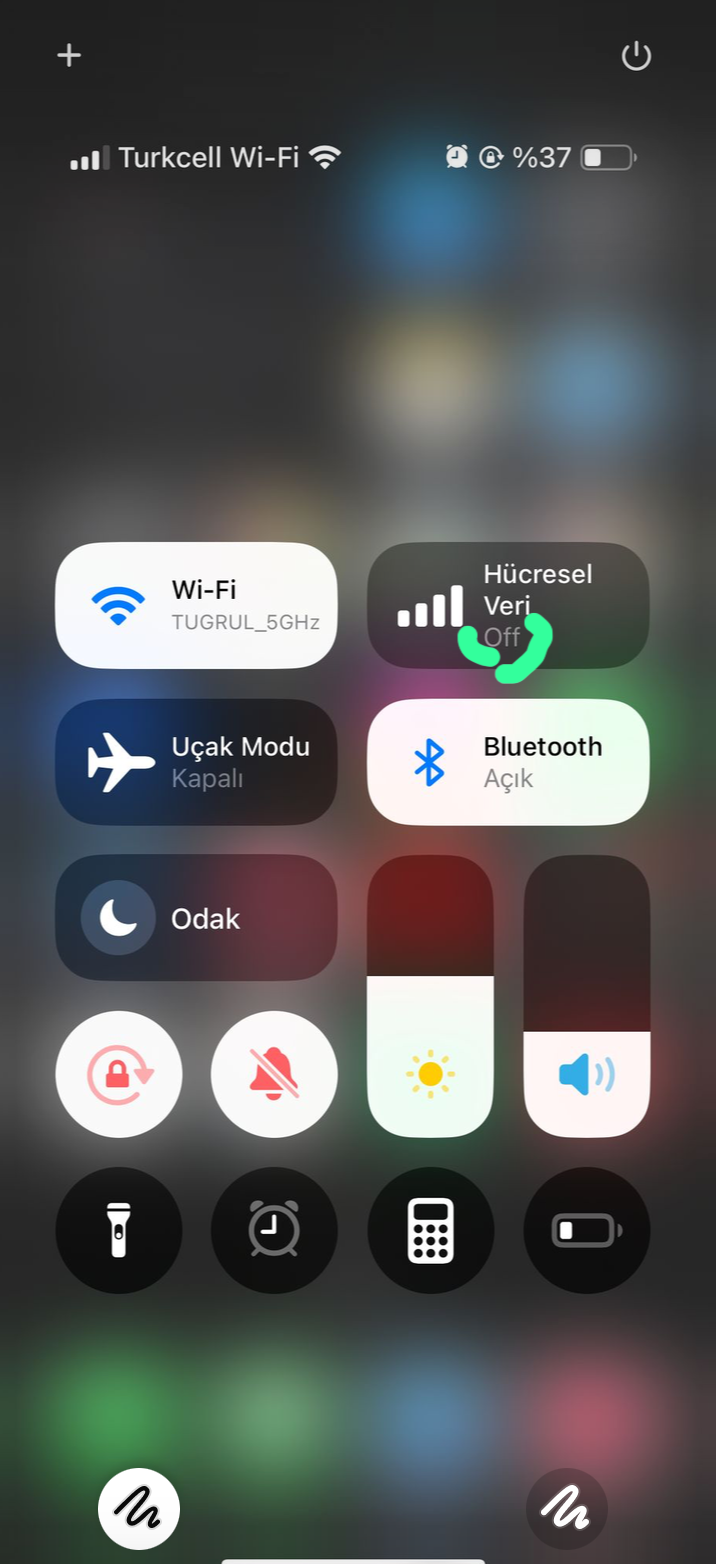 Hello, I noticed something today. In the Control Center, under 'Cellular Data,' where it should say 'Off' and 'On,' it is written as 'On' and 'Off.' This section should also be in Turkish.