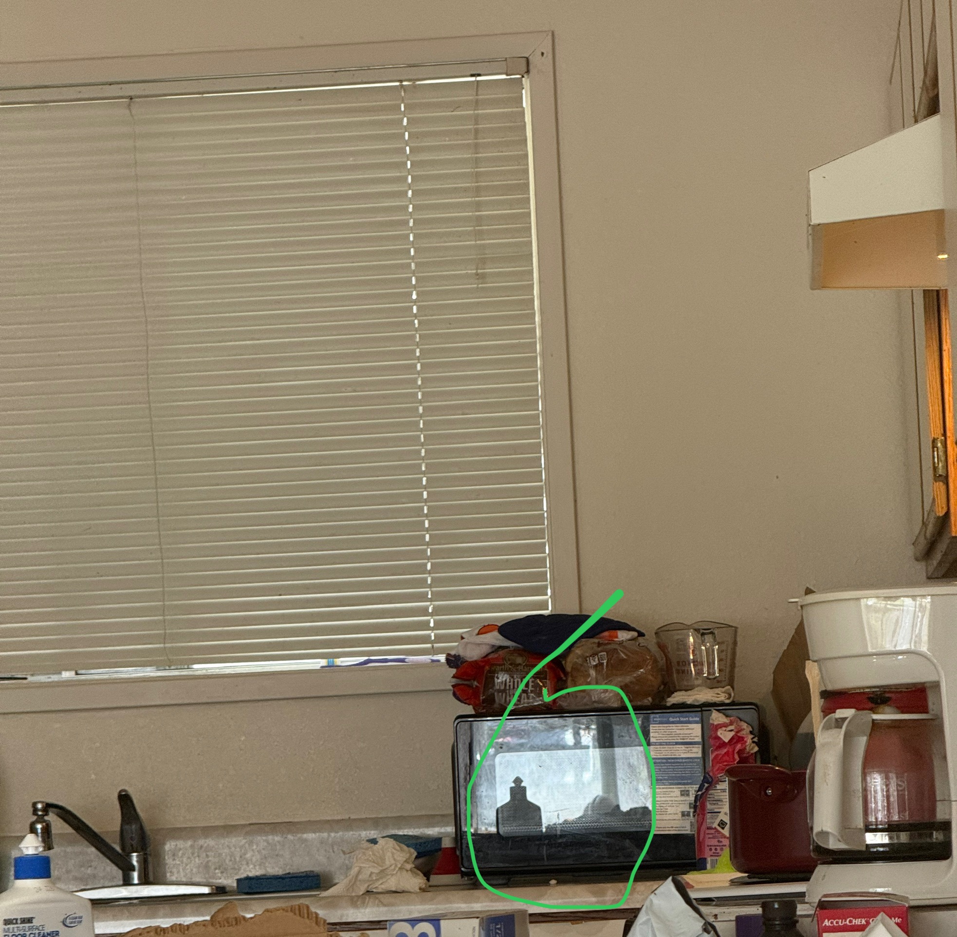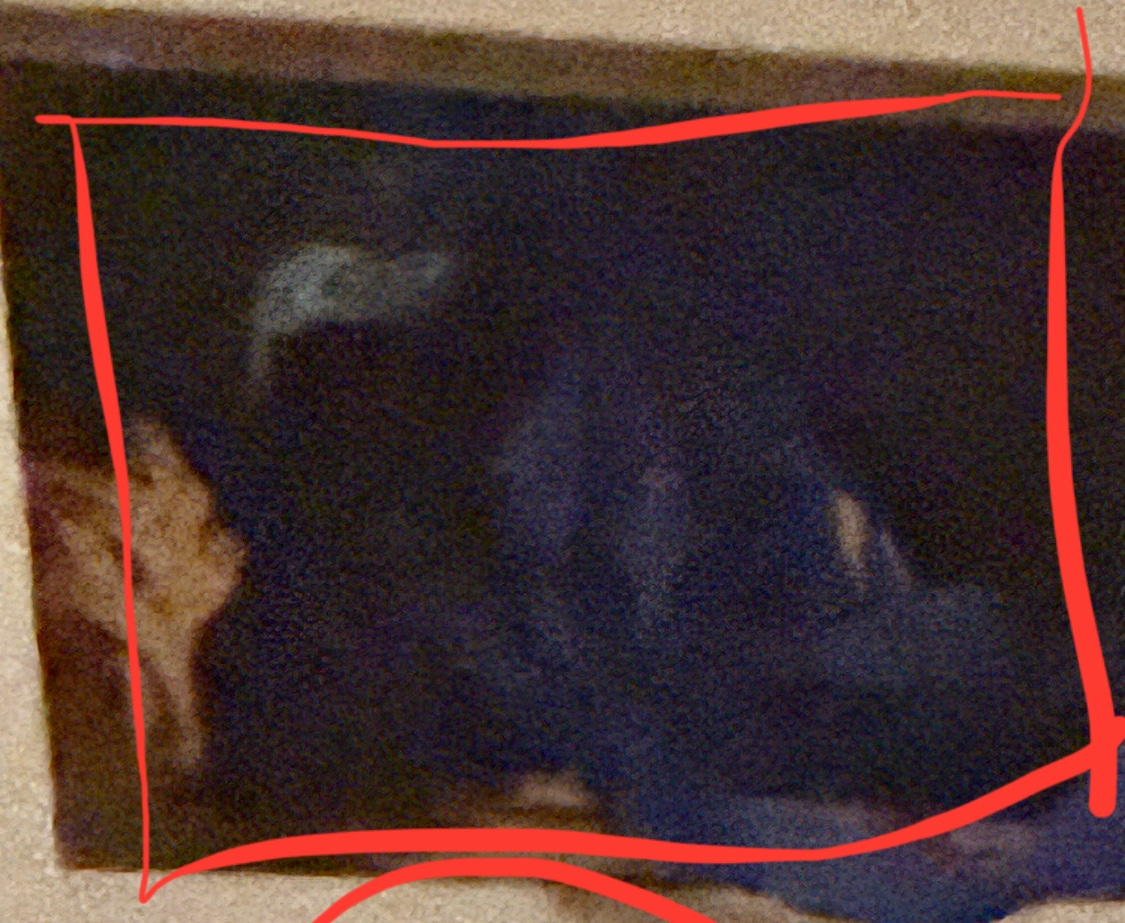 I took pictures of my ceiling at the following zooms: 1.5x, 2x and 5x. Please note that the picture that has the blue line has no unusual images in it. I only put that line there so that I would know to tell you that the second picture is a picture of the of the picture with the blue line on it enlarged.
