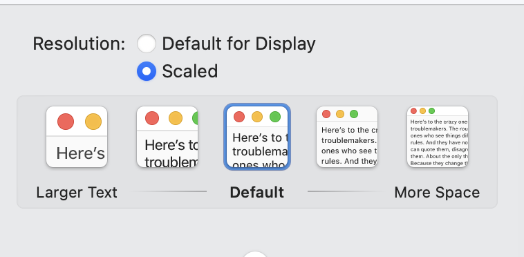 How can I get a scaled image on 4K in Sonoma? All the text & windows are tiny. There is no scaling option in Display Settings.