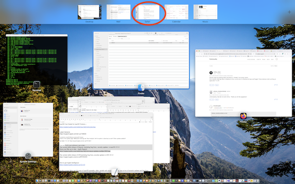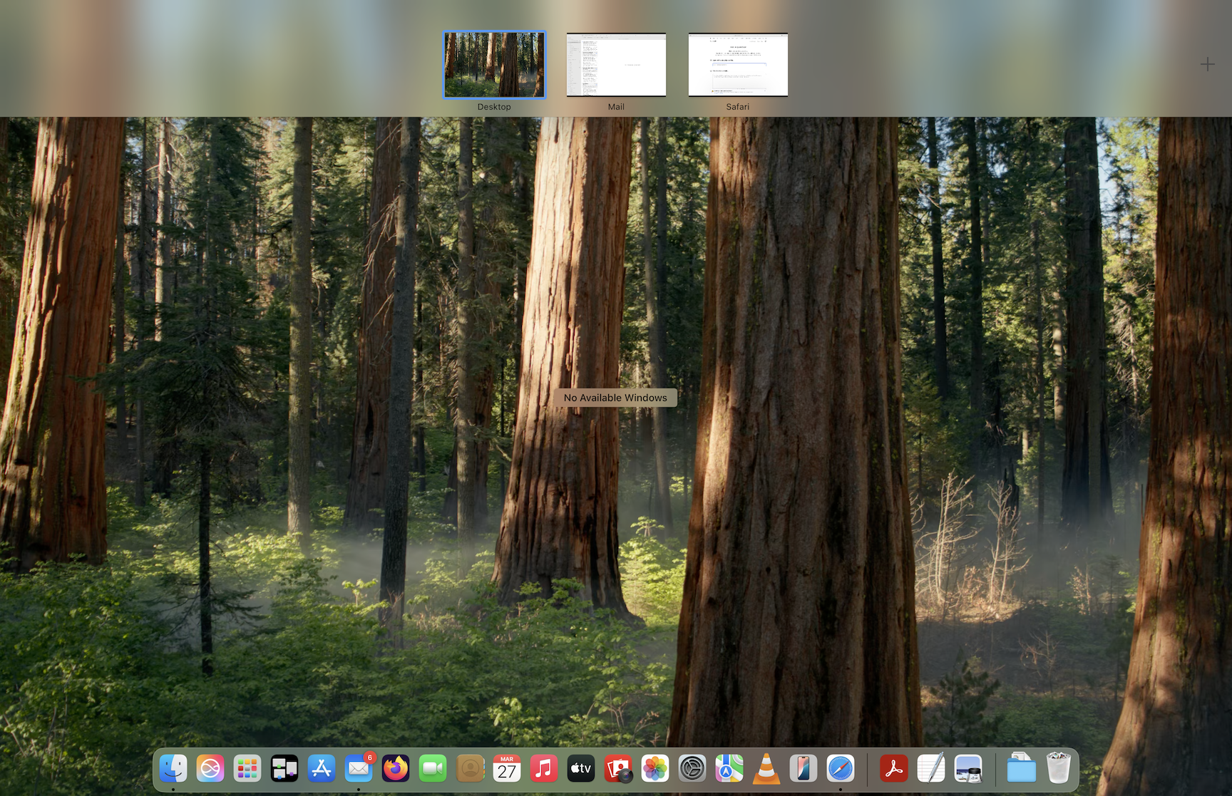 MacOS might be keeping Safari and Mail in a "hidden" full-screen space.