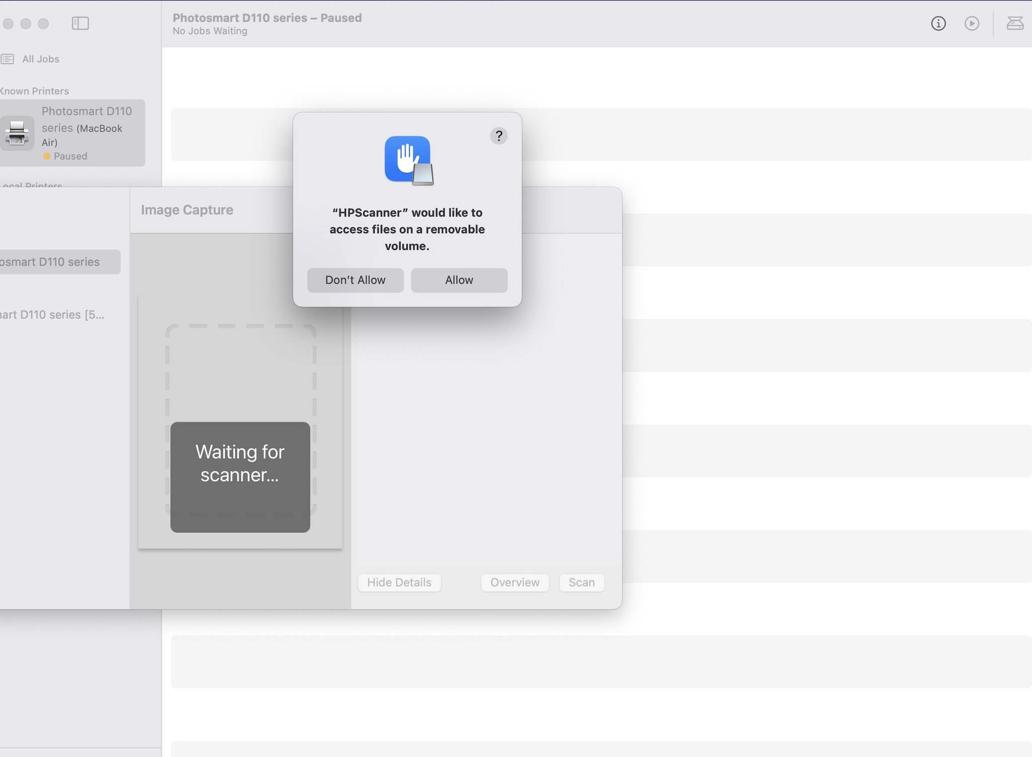 "HPScanner" would like to access files on a removable volume--What is a Removable Volume and Should I be giving Access to HP or anyone else to access my Files and Data ? Is there anyway to make the Scanner Work without granting access ?