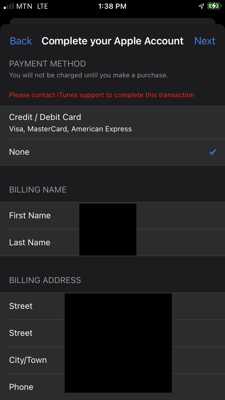 Unable to log in to the App Store says 'Please contact iTunes Support to complete this transaction'