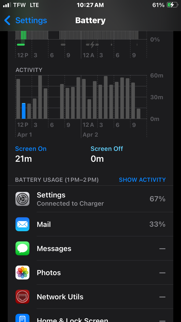 • Don't see anything suspicious with your app usage and reporting of Screen Time. There is not a direct correlation between minutes of use and Battery Percentage. Take for example an app playing videos is going to take up a far higher percentage then simply viewing the Notes screen for a far longer time.